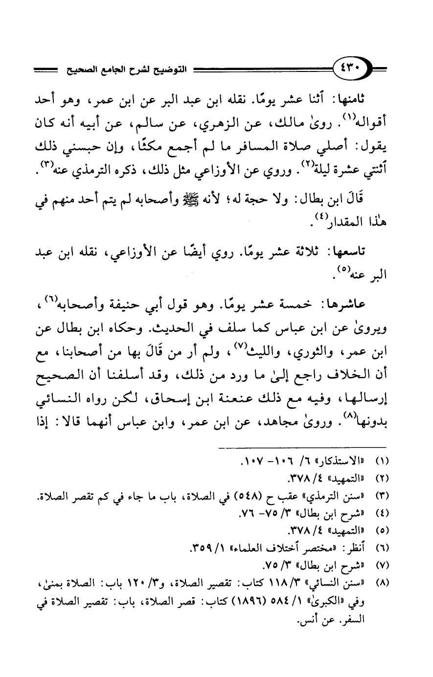 (¬1) "الاستذكار" 6/ 106 - 107.