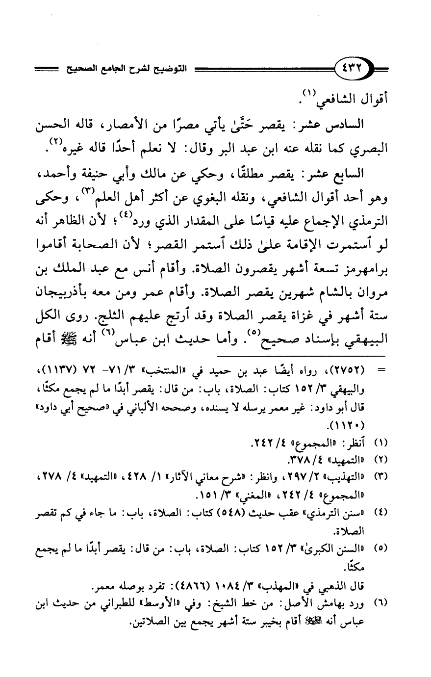 (¬5) "السنن الكبرى" 3/ 152 كتاب: الصلاة، باب: من قال: يقصر أبدًا ما لم يجمع مكثًا.