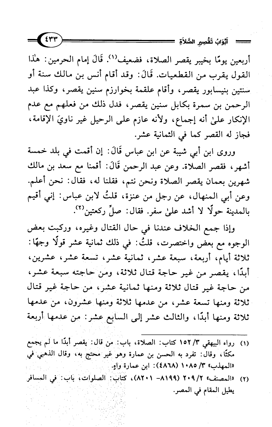 (¬2) "المصنف" 2/ 209 (8199 - 8201)، كتاب: الصلوات، باب: في المسافر يطيل المقام في المصر.