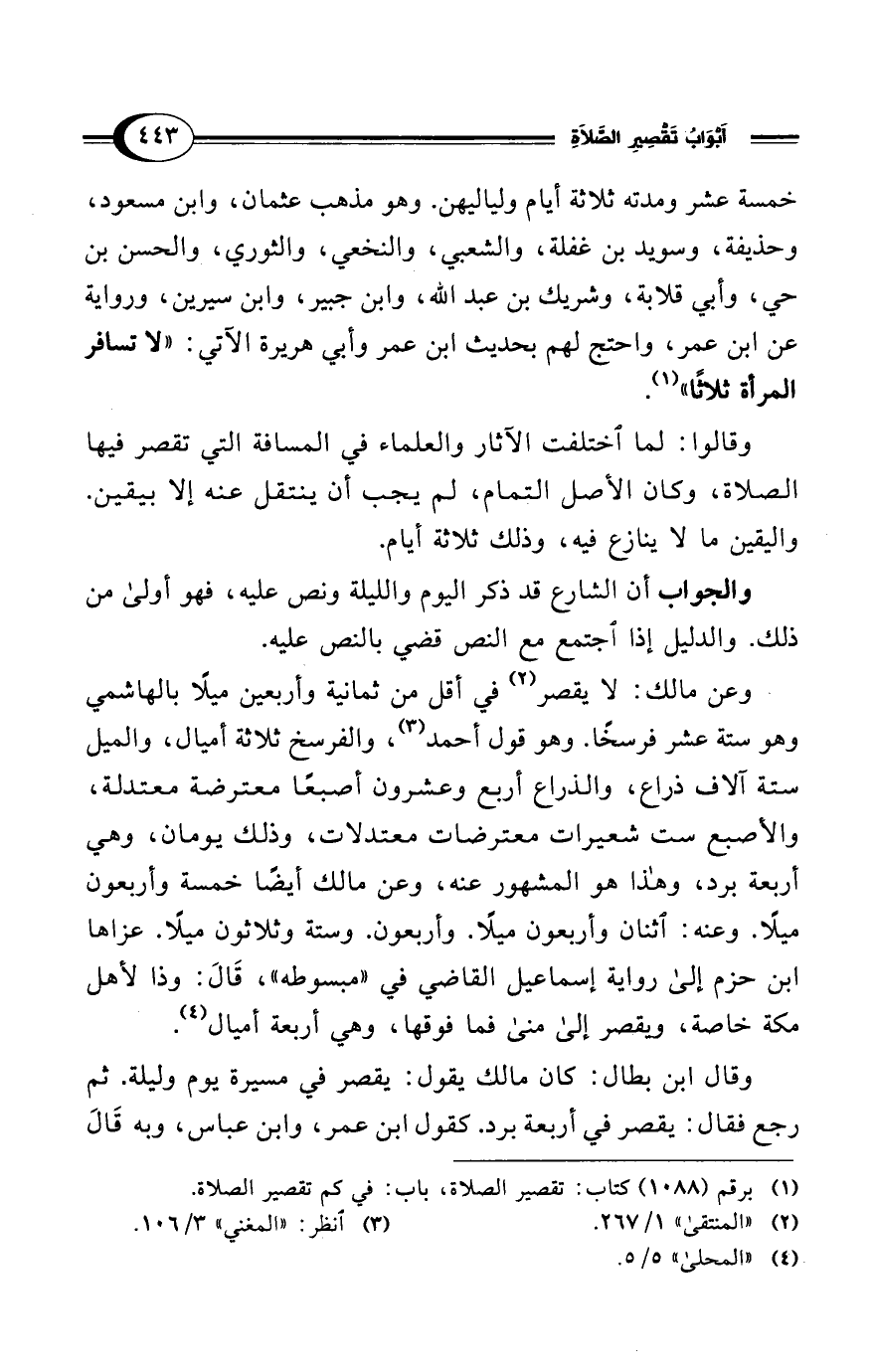 (¬1) برقم (1088) كتاب: تقصير الصلاة، باب: في كم تقصير الصلاة.