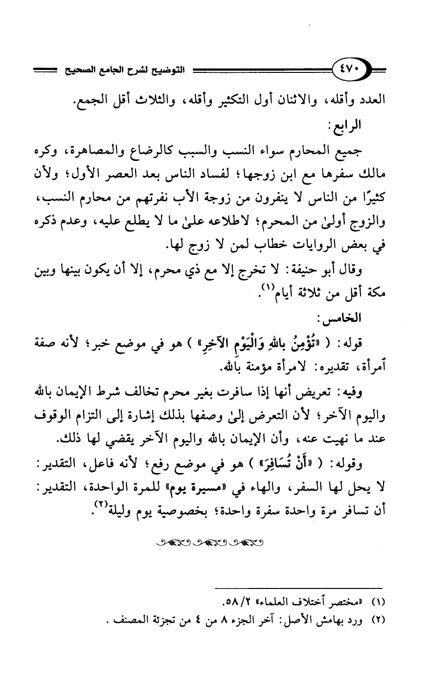 وقوله: ("أَنْ تُسَافِرَ") هو في موضع رفع؛ لأنه فاعل، التقدير: لا يحل لها السفر، والهاء في "مسيرة يوم" للمرة الواحدة، التقدير: أن تسافر مرة واحدة سفرة واحدة؛ بخصوصية يوم وليلة (¬2).