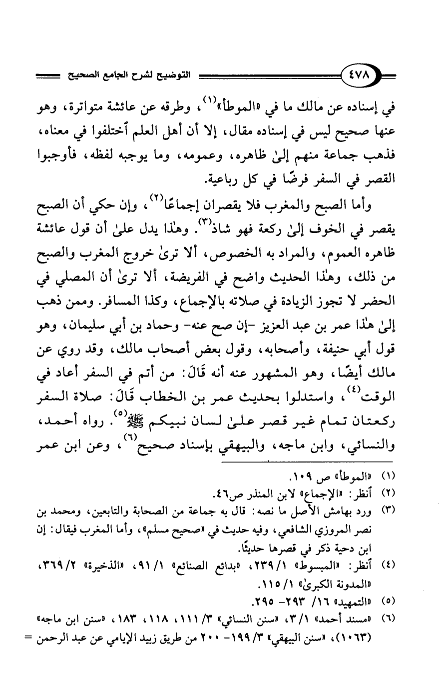 (¬3) ورد بهامش الأصل ما نصه: قال به جماعة من الصحابة والتابعين، ومحمد بن نصر المروزي الشافعي، وفيه حديث في "صحيح مسلم"، وأما المغرب فيقال: إن ابن دحية ذكر في قصرها حديثًا.