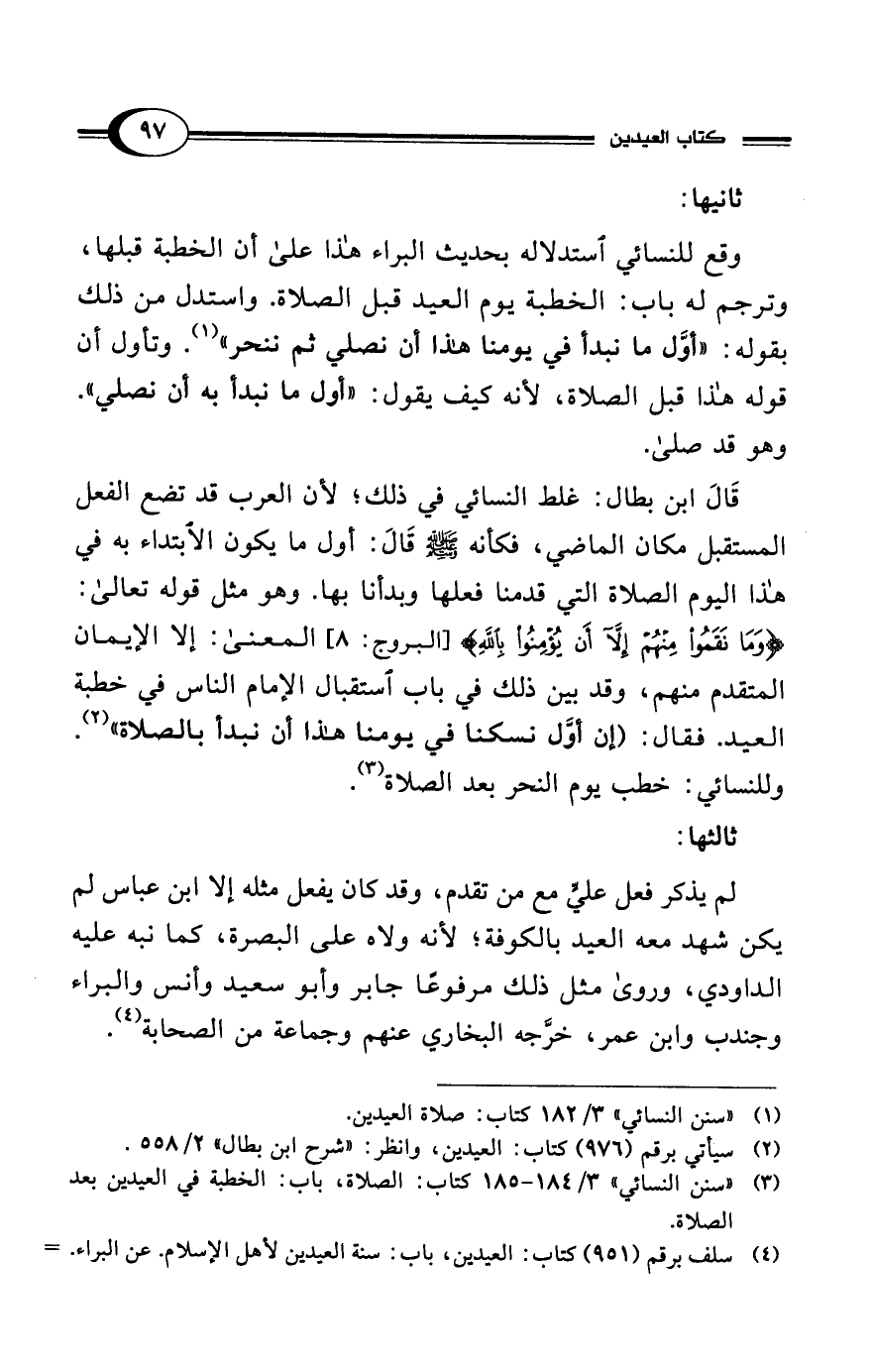 (¬3) "سنن النسائي" 3/ 184 - 185 كتاب: الصلاة، باب: الخطبة في العيدين بعد الصلاة.