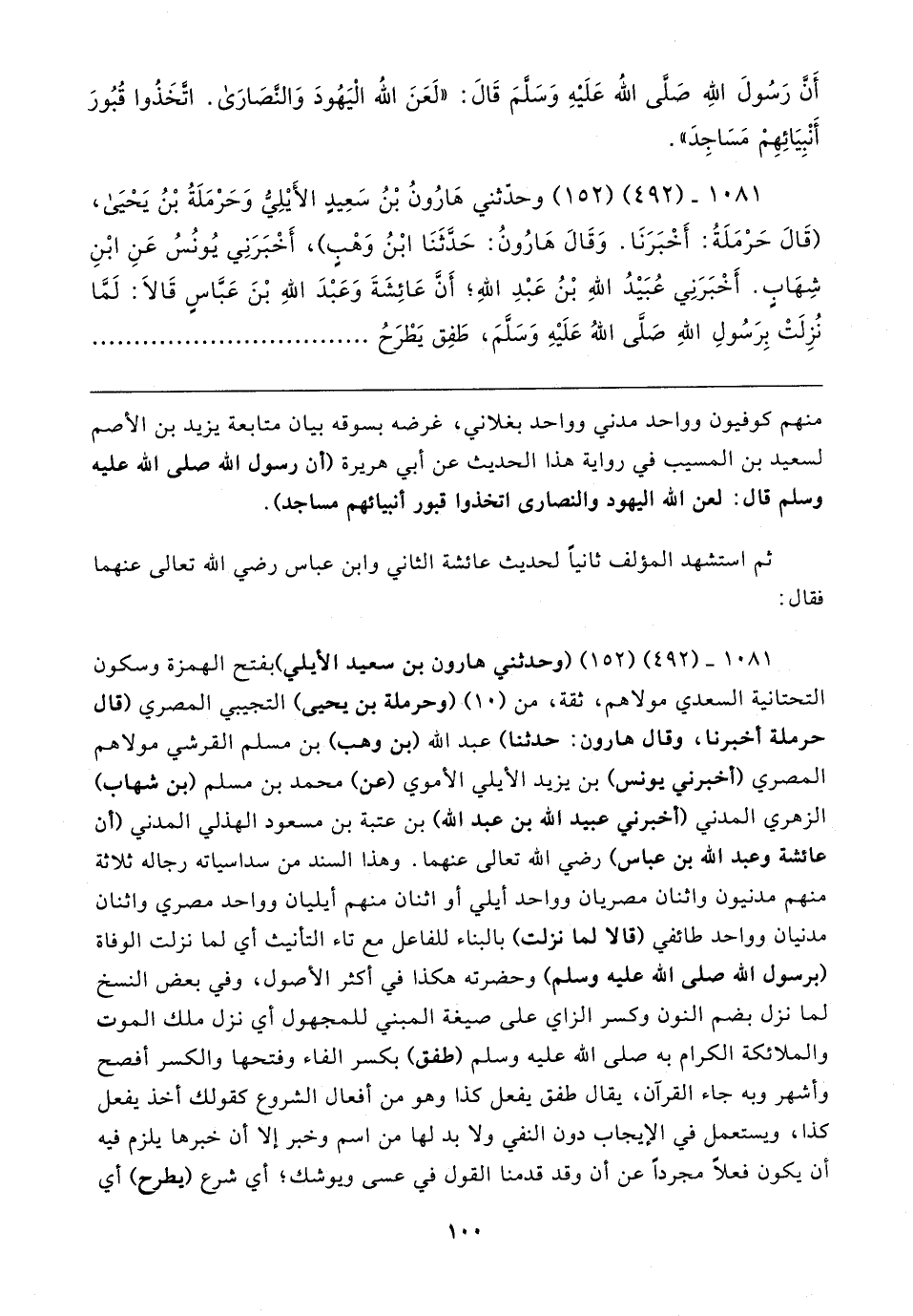 ١٠٨١ - (٤٩٢) (١٥٢) وحدّثني هَارُونُ بْنُ سَعِيدٍ الأَيلِيُّ وَحَرْمَلَةُ بْنُ يَحْيَى، (قَال حَرْمَلَةُ: أَخْبَرَنَا. وَقَال هَارُونُ: حَدَّثَنَا ابْنُ وَهْبٍ)، أَخْبَرَنِي يُونُسُ عَنِ ابْنِ شِهَابٍ. أخْبَرَنِي عُبَيدُ اللهِ بْنُ عَبْدِ اللهِ؛ أنَّ عَائِشَةَ وَعَبْدَ اللهِ بْنَ عَبَّاسٍ قَالا: لَمَّا نُزِلَتْ بِرَسُولِ اللهِ صَلَّى اللهُ عَلَيهِ وَسَلَّمَ، طَفِق يَطْرَحُ