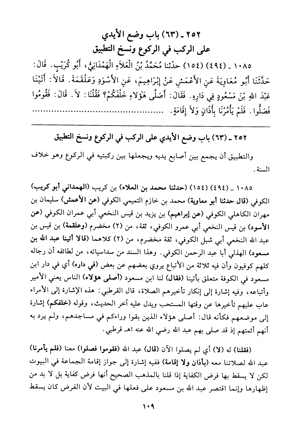 ٢٥٢ - (٦٣) باب وضع الأيدي على الركب في الركوع ونسخ التطبيق
