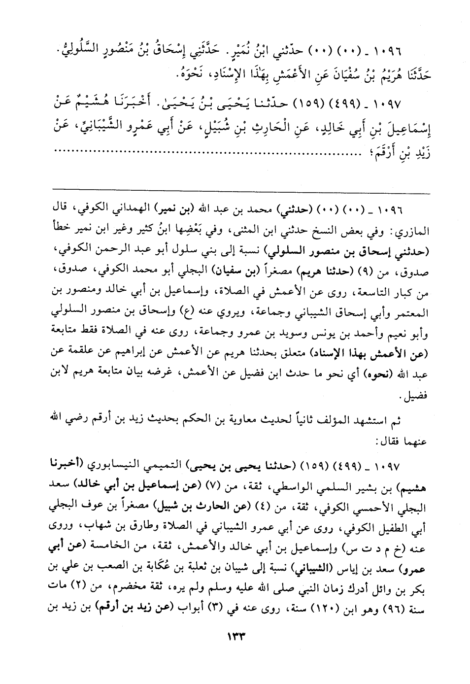 ١٠٩٧ - (٤٩٩) (١٥٩) (حدثنا يحيى بن يحيى) التميمي النيسابوري (أخبرنا هشيم) بن بشير السلمي الواسطي، ثقة، من (٧) (عن إسماعبل بن أبي خالد) سعد البجلي الأحمسي الكوفي، ثقة، من (٤) (عن الحارث بن شبيل) مصغرًا بن عوف البجلي أبي الطفيل الكوفي، روى عن أبي عمرو الشيباني في الصلاة وطارق بن شهاب، وروى عنه (خ م د ت س) وإسماعيل بن أبي خالد والأعمش، ثقة، من الخامسة (عن أبي عمرو) سعد بن إياس (الشيباني) نسبة إلى شيبان بن ثعلبة بن عُكَابة بن الصعب بن علي بن بكر بن وائل أدرك زمان النبي صلى الله عليه وسلم ولم يره، ثقة مخضرم، من (٢) مات سنة (٩٦) وهو ابن (١٢٠) سنة، روى عنه في (٣) أبواب (عن زيد بن أرقم) بن زيد بن