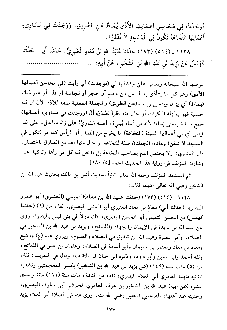 ١١٢٨ - (٥١٤) (١٧٣) حدثنا عُبَيدُ اللهِ بْنُ مُعَاذِ الْعَنْبَرِيُّ. حَدَّثنَا أَبِي. حَدَّثَنَا كَهْمَسٌ عَنْ يَزِيدَ بْنِ عَبْدِ اللهِ بْنِ الشِّخِّيرِ، عَنْ أبِيهِ؛