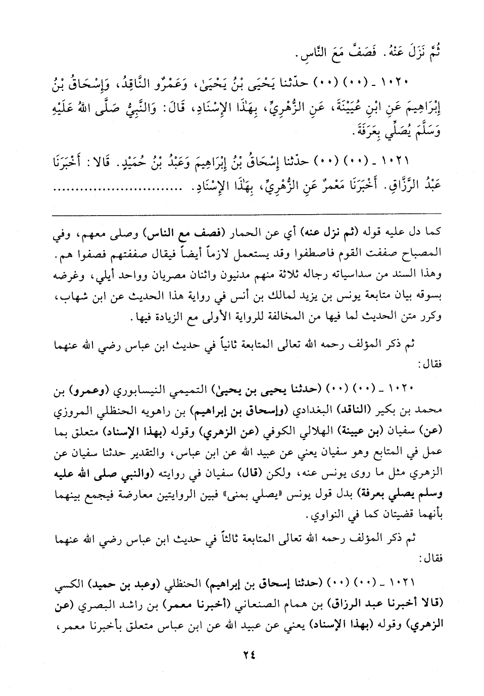 ١٠٢٠ - (٠٠) (٠٠) حدَّثنا يَحْيَى بْنُ يَحْيَى، وَعَمْرٌو النَّاقِدُ، وَإِسْحَاقُ بْنُ إِبْرَاهِيمَ عَنِ ابْنِ عُيَينَةَ، عَنِ الزُّهْرِيِّ، بِهَذَا الإِسْنَادِ، قَال: وَالنَّبِيُّ صَلَّى اللهُ عَلَيهِ وَسَلَّمَ يُصَلِّي بِعَرَفَةَ.