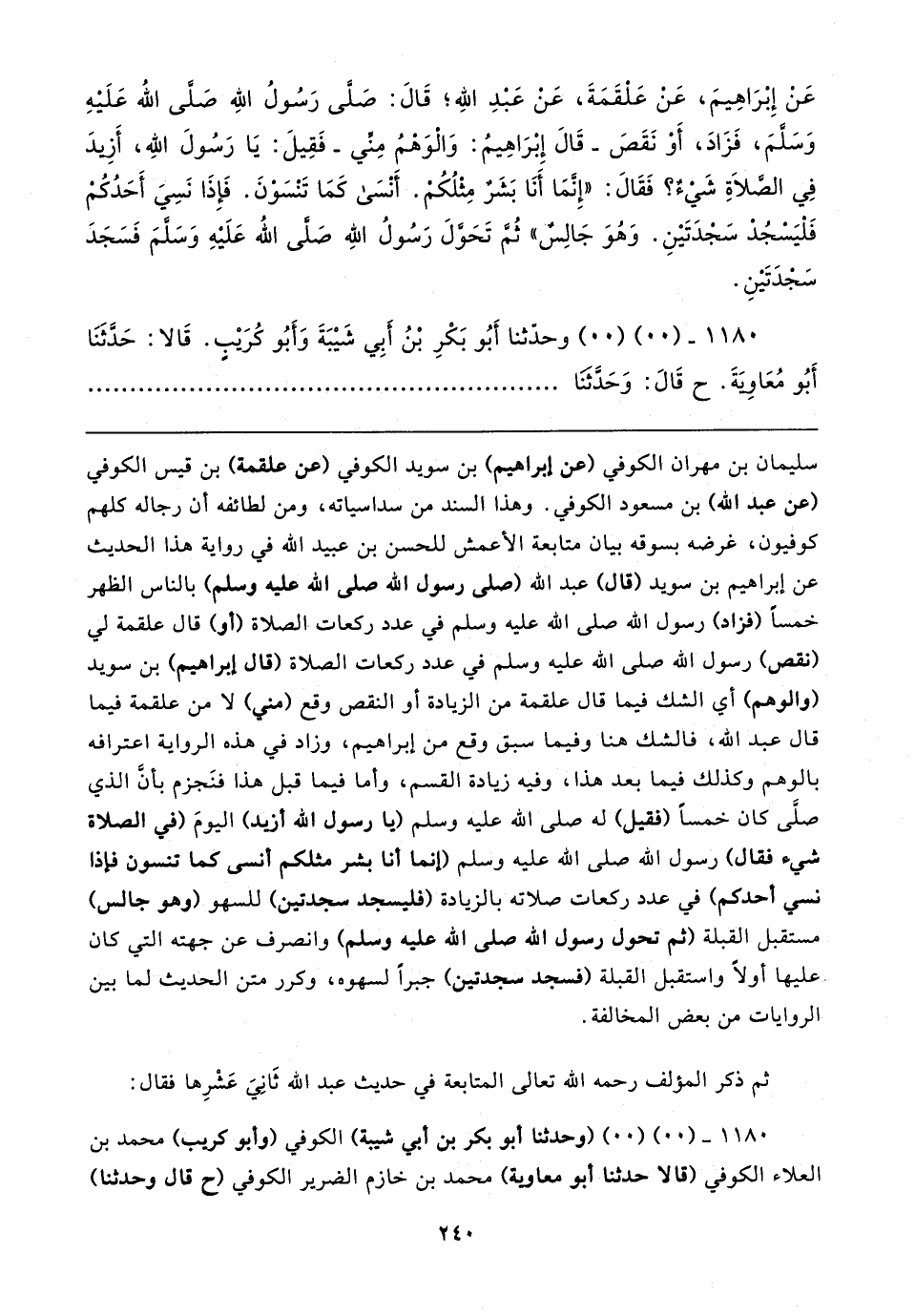 ١١٨٠ - (٠٠) (٠٠) وحدثنا أبُو بَكْرِ بْنُ أَبِي شَيبَةَ وَأَبُو كُرَيب. قَالا: حَدَّثَنَا أبُو مُعَاويةَ. ح قَال: وَحَدثنَا