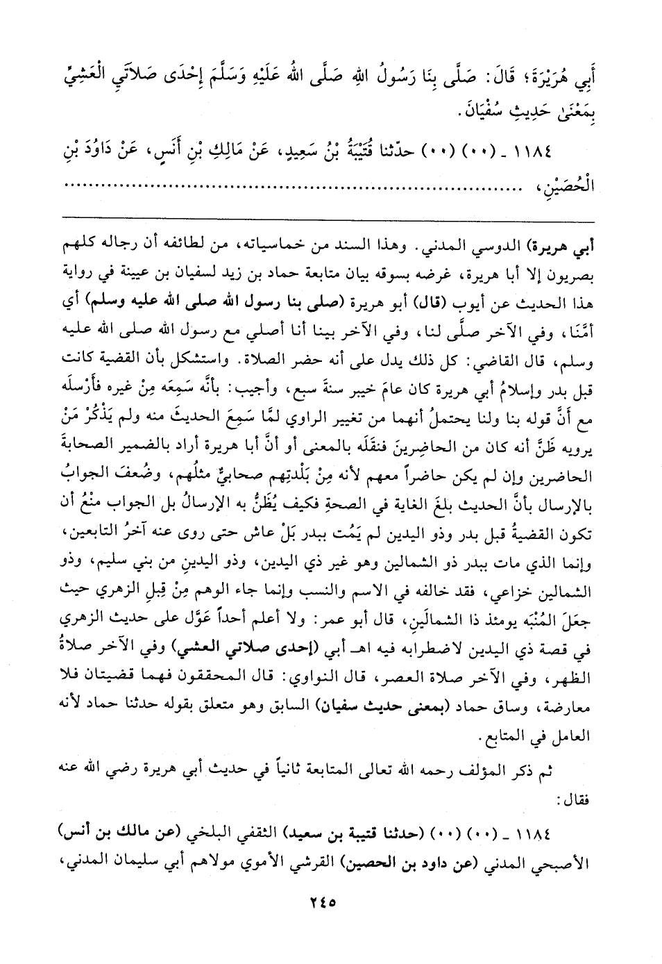 ١١٨٤ - (٠٠) (٠٠) حدثنا قُتَيبَةُ بْنُ سَعِيدٍ، عَنْ مَالِكٍ بْنِ أَنَسٍ، عَنْ دَاوُدَ بْنِ الحُصَينِ،
