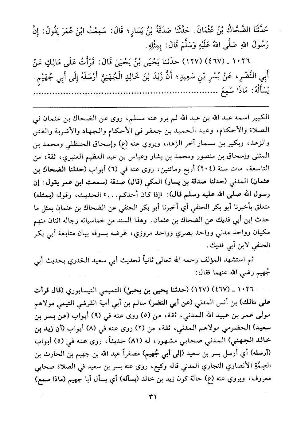 ١٠٢٦ - (٤٦٧) (١٢٧) حدَّثنا يَحْيَى بْنُ يحيى قَال: قَرَأْتُ عَلَى مَالِكٍ عَنْ أَبِي النَّضْرِ، عَنْ بُسْرِ بْنِ سَعِيدٍ؛ أَنَّ زَيدَ بْنَ خَالِدٍ الْجُهَنِيَّ أَرْسَلَهُ إِلَى أَبِي جُهَيمٍ. يَسْأَلُهُ: مَاذَا سَمِعَ