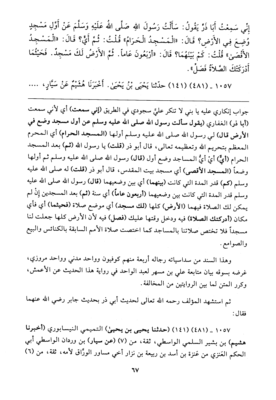 ١٠٥٧ - (٤٨١) (١٤١) حدثنا يَحيَى بْنُ يَحيى. أَخْبَرَنَا هُشَيمٌ عَنْ سَيَّارٍ،