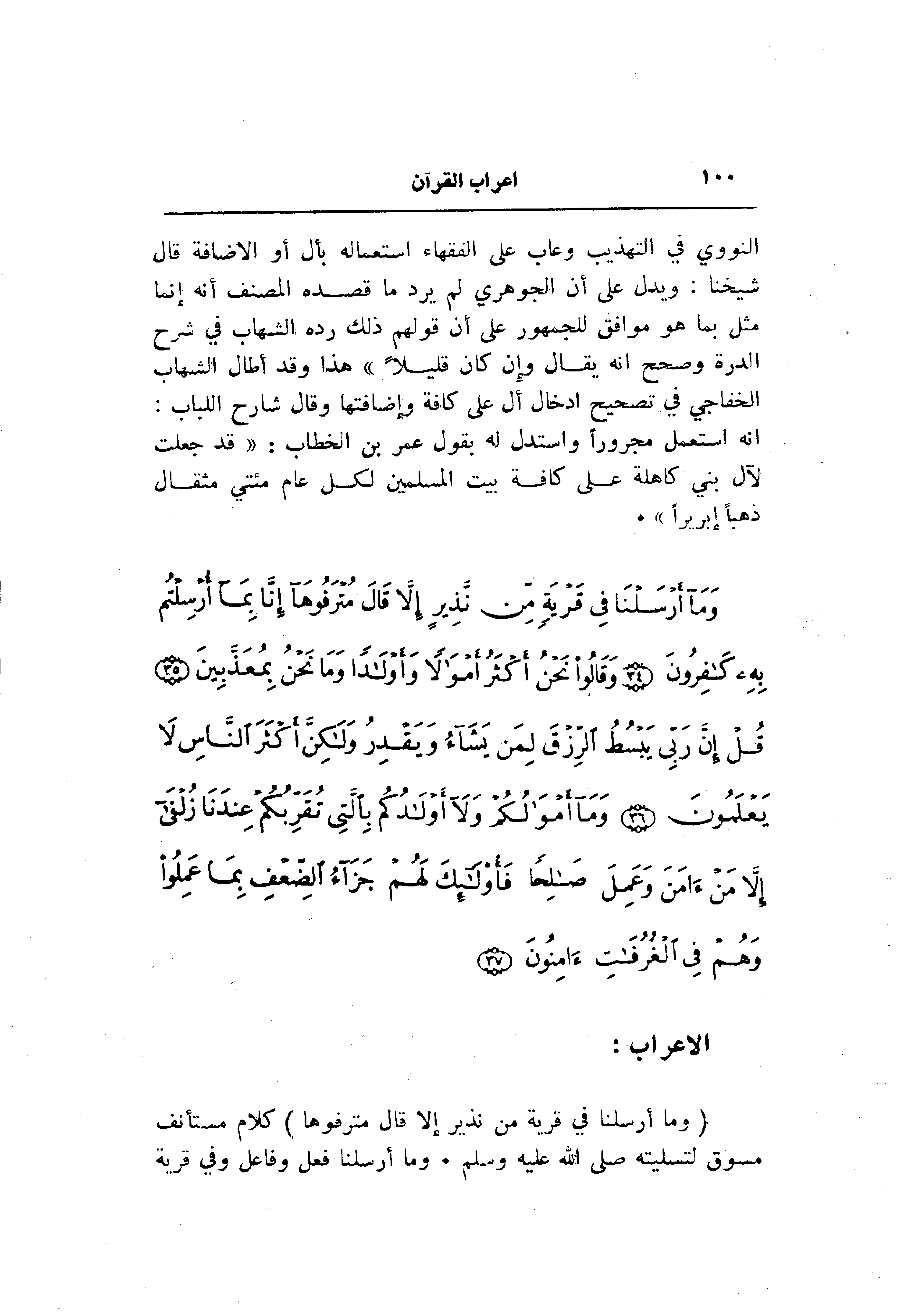 (وَما أَرْسَلْنا فِي قَرْيَةٍ مِنْ نَذِيرٍ إِلَّا قالَ مُتْرَفُوها) كلام مستأنف مسوق لتسليته صلى الله عليه وسلم. وما أرسلنا فعل وفاعل وفي قرية