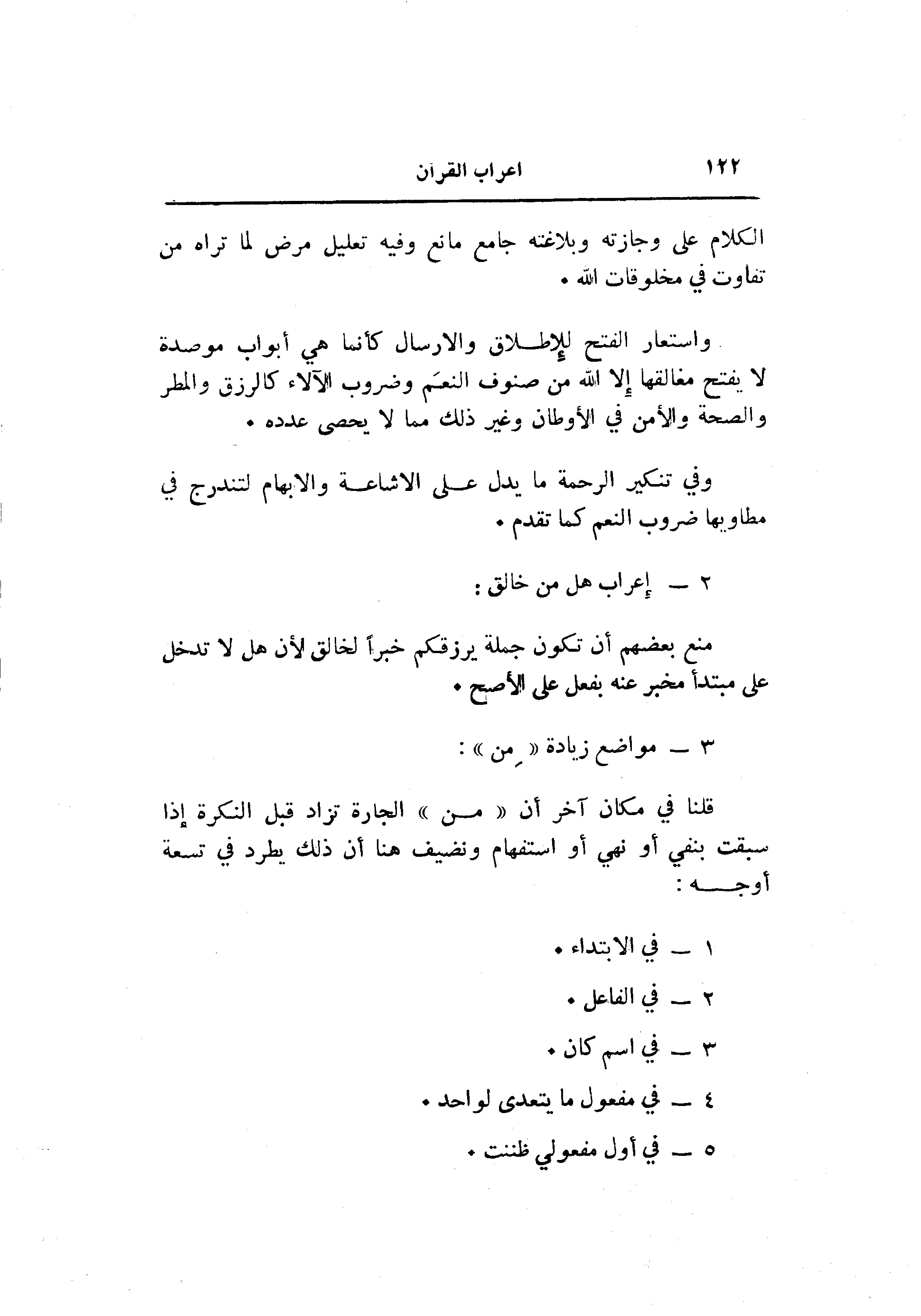 قلنا في مكان آخر أن «من» الجارة تزاد قبل النكرة إذا سبقت بنفي أو نهي أو استفهام ونضيف هنا أن ذلك يطرد في تسعة أوجه: