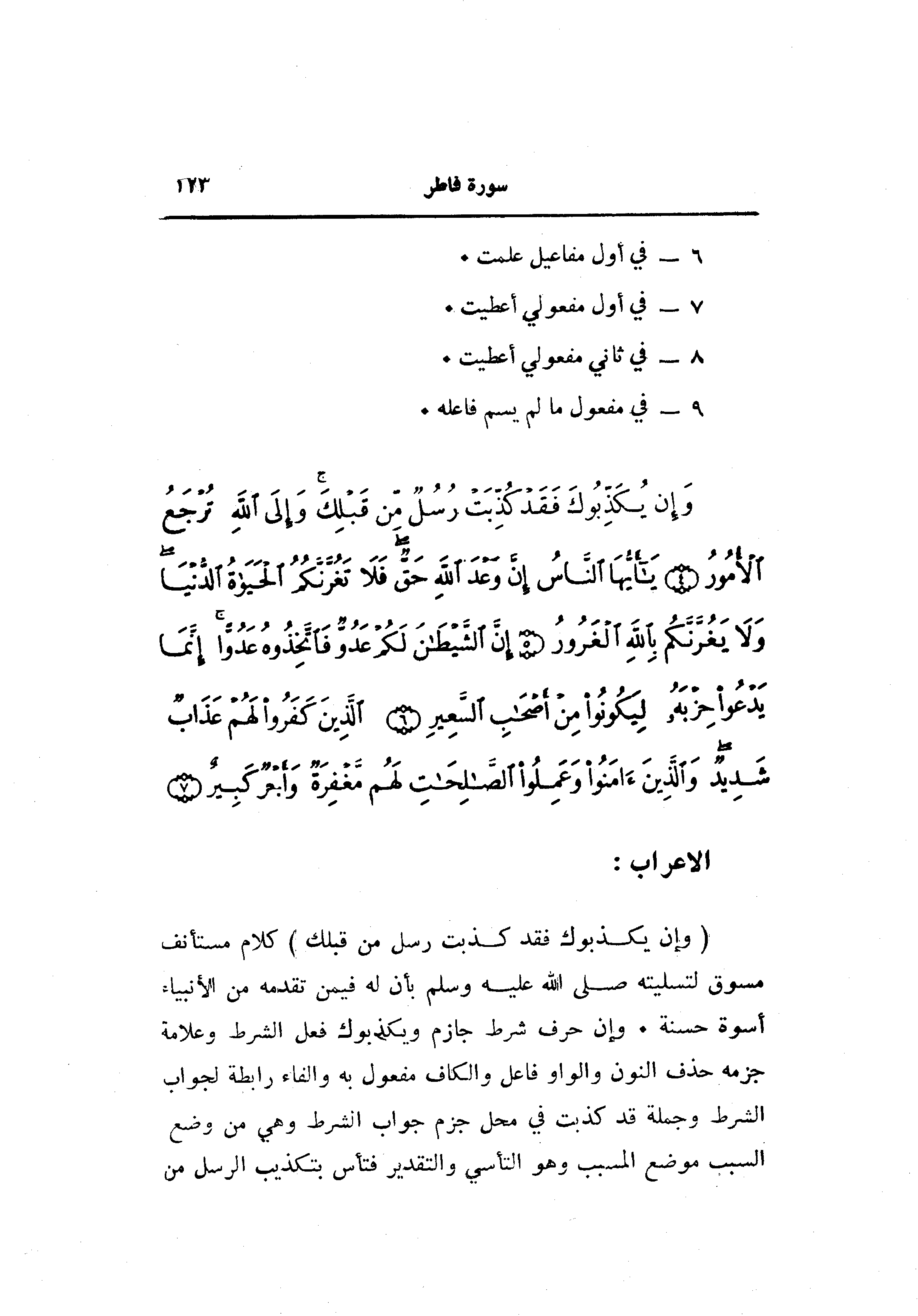 (وَإِنْ يُكَذِّبُوكَ فَقَدْ كُذِّبَتْ رُسُلٌ مِنْ قَبْلِكَ) كلام مستأنف مسوق لتسليته صلى الله عليه وسلم بأن له فيمن تقدمه من الأنبياء أسوة حسنة. وإن حرف شرط جازم ويكذبوك فعل الشرط وعلامة جزمه حذف النون والواو فاعل والكاف مفعول به والفاء رابطة لجواب الشرط وجملة قد كذبت في محل جزم جواب الشرط وهي من وضع السبب موضع المسبب وهو التأسي والتقدير فتأس بتكذيب الرسل من