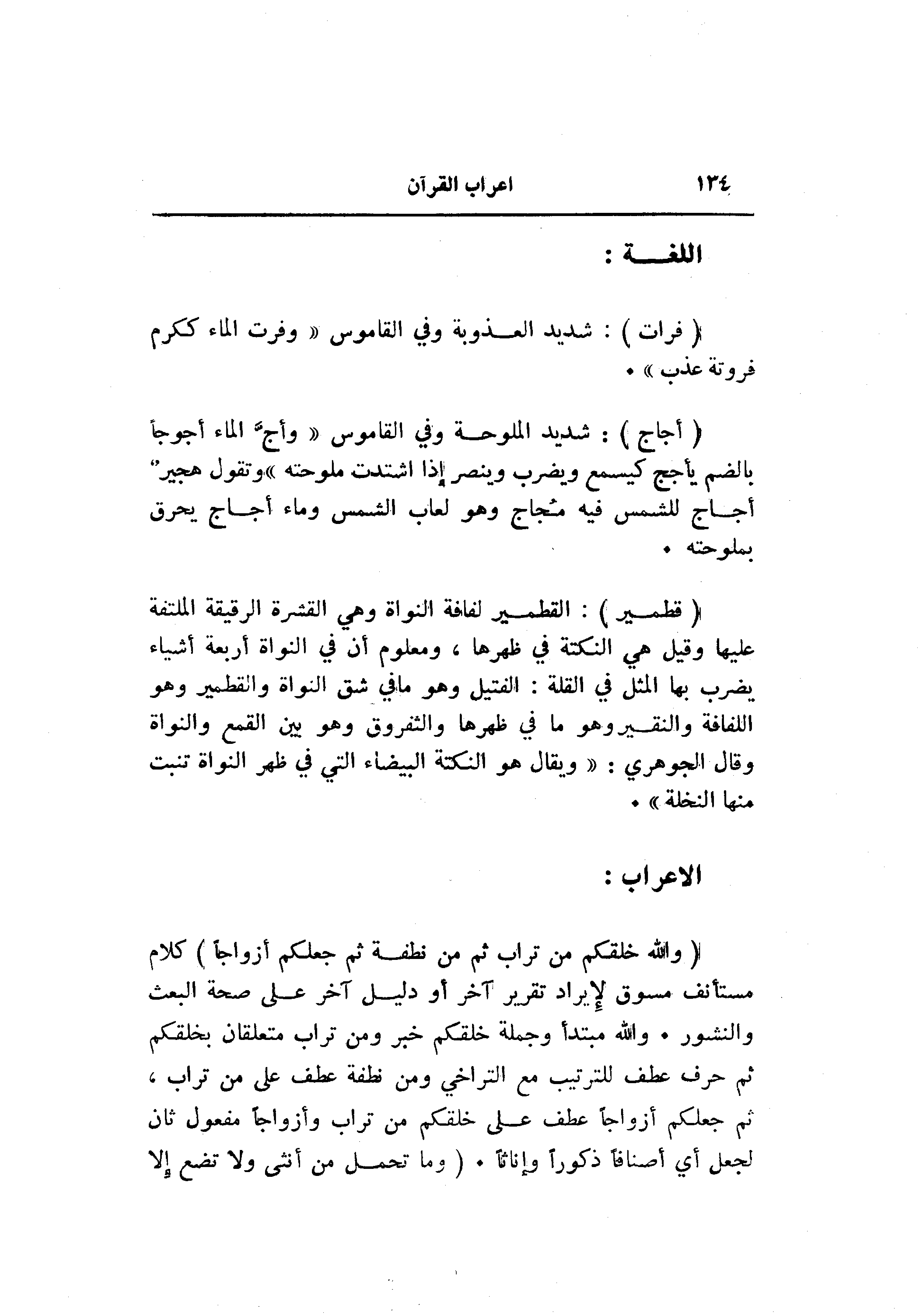 (وَاللَّهُ خَلَقَكُمْ مِنْ تُرابٍ ثُمَّ مِنْ نُطْفَةٍ ثُمَّ جَعَلَكُمْ أَزْواجاً) كلام مستأنف مسوق لإيراد تقرير آخر أو دليل آخر على صحة البعث والنشور. والله مبتدأ وجملة خلقكم خبر ومن تراب متعلقان بخلقكم ثم حرف عطف للترتيب مع التراخي ومن نطفة عطف على من تراب، ثم جعلكم أزواجا عطف على خلقكم من تراب وأزواجا مفعول ثان لجعل أي أصنافا ذكورا وإناثا. (وَما تَحْمِلُ مِنْ أُنْثى وَلا تَضَعُ إِلَّا بِعِلْمِهِ)