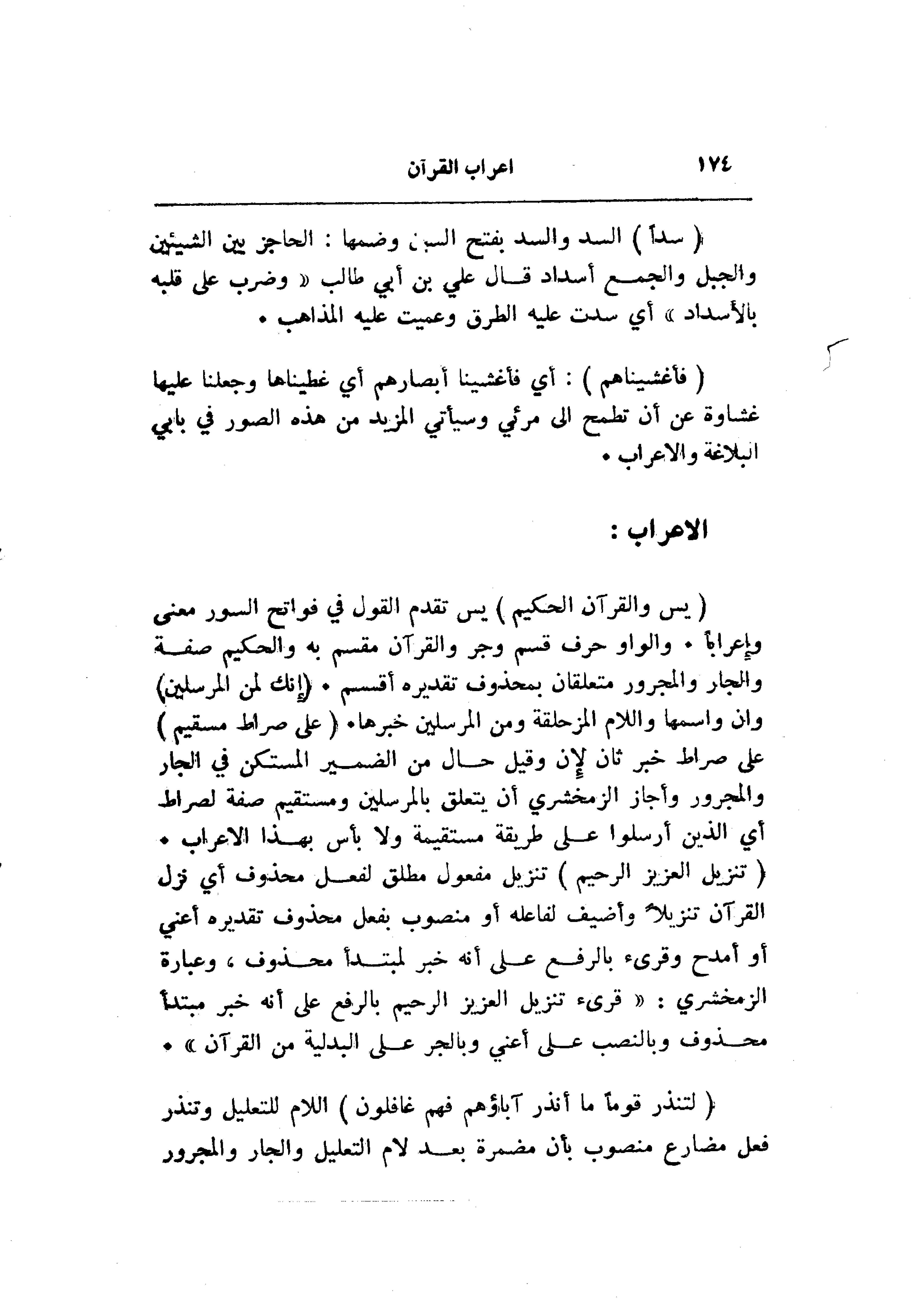 (فَأَغْشَيْناهُمْ) : أي فأغشينا أبصارهم أي غطيناها وجعلنا عليها غشاوة عن أن تطمح الى مرئي وسيأتي المزيد من هذه الصور في بابي البلاغة والاعراب.