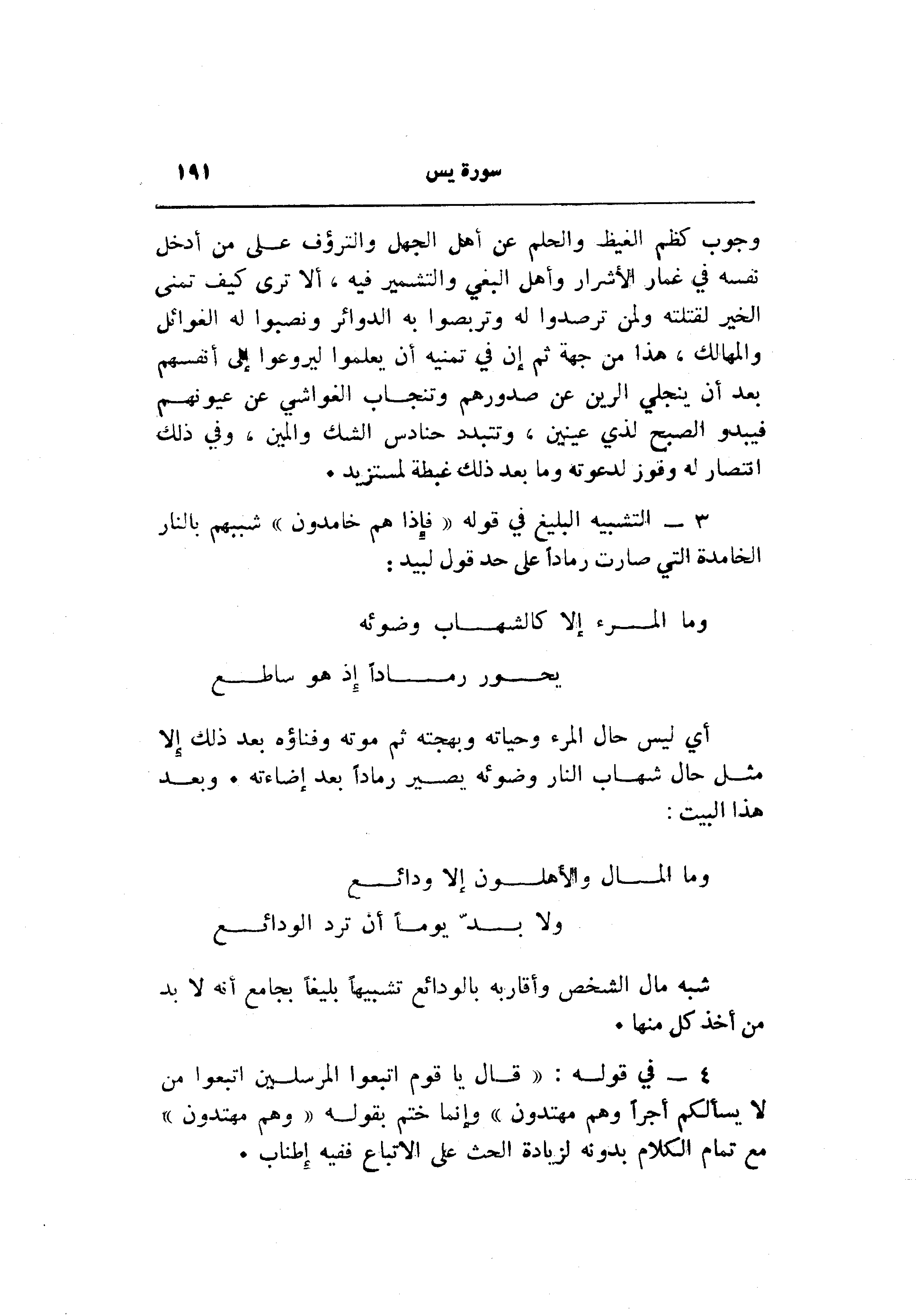 3- التشبيه البليغ في قوله «فإذا هم خامدون» شببهم بالنار الخامدة التي صارت رمادا على حد قول لبيد: