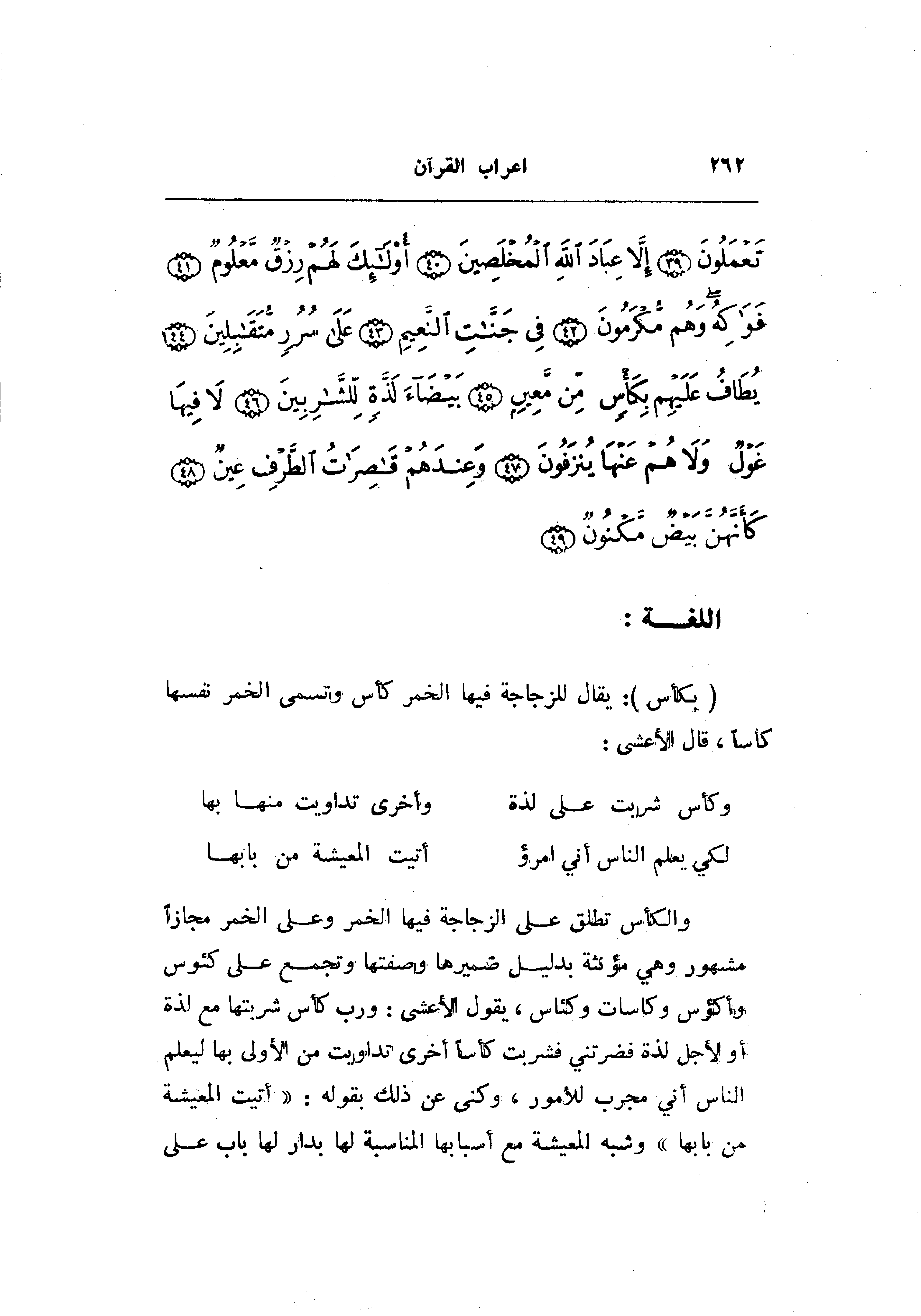 (بِكَأْسٍ) : يقال للزجاجة فيها الخمر كأس وتسمى الخمر نفسها كأسا، قال الأعشى: