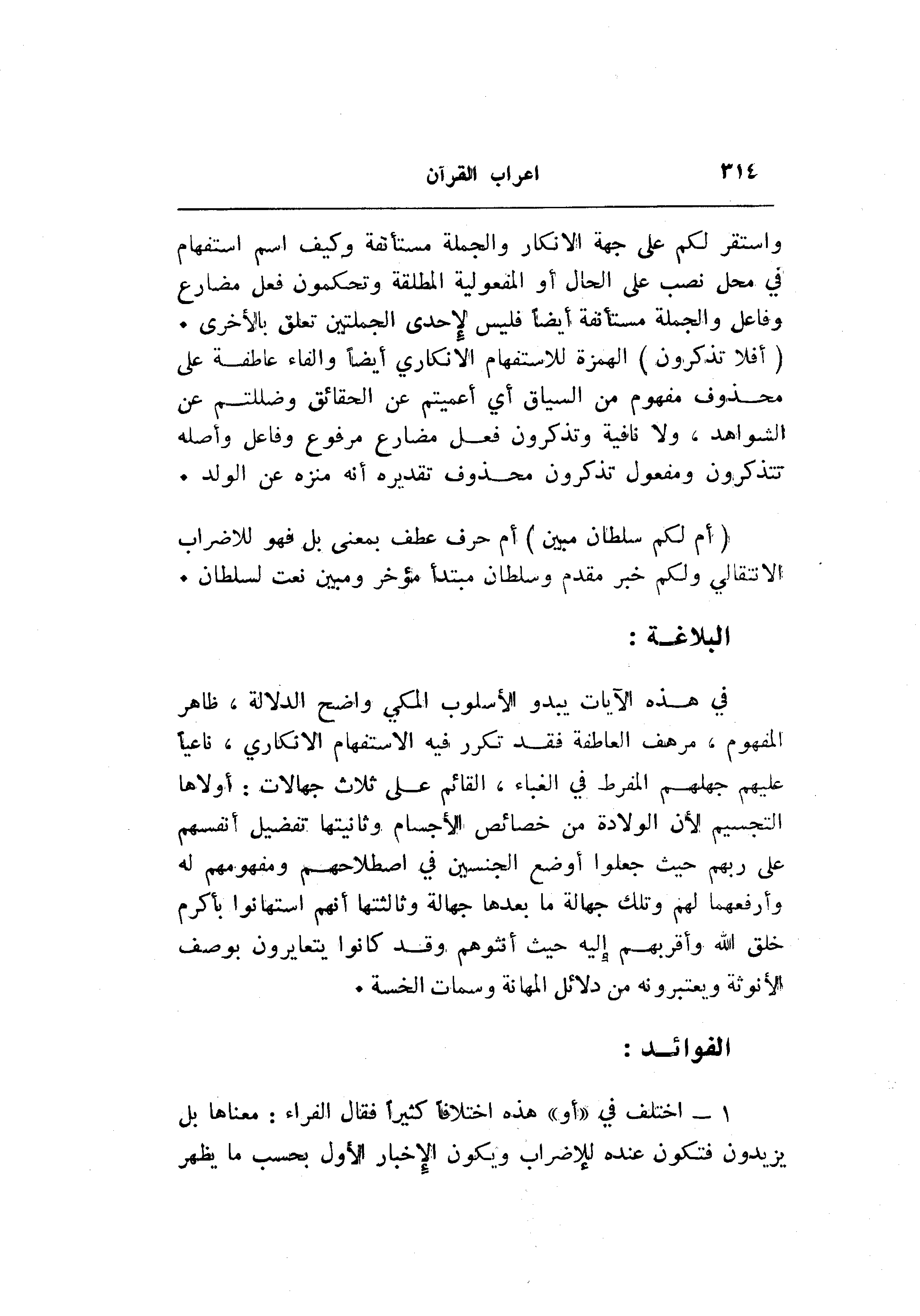 (أَمْ لَكُمْ سُلْطانٌ مُبِينٌ) أم حرف عطف بمعنى بل فهو للاضراب الانتقالي ولكم خبر مقدم وسلطان مبتدأ مؤخر ومبين نعت لسلطان.