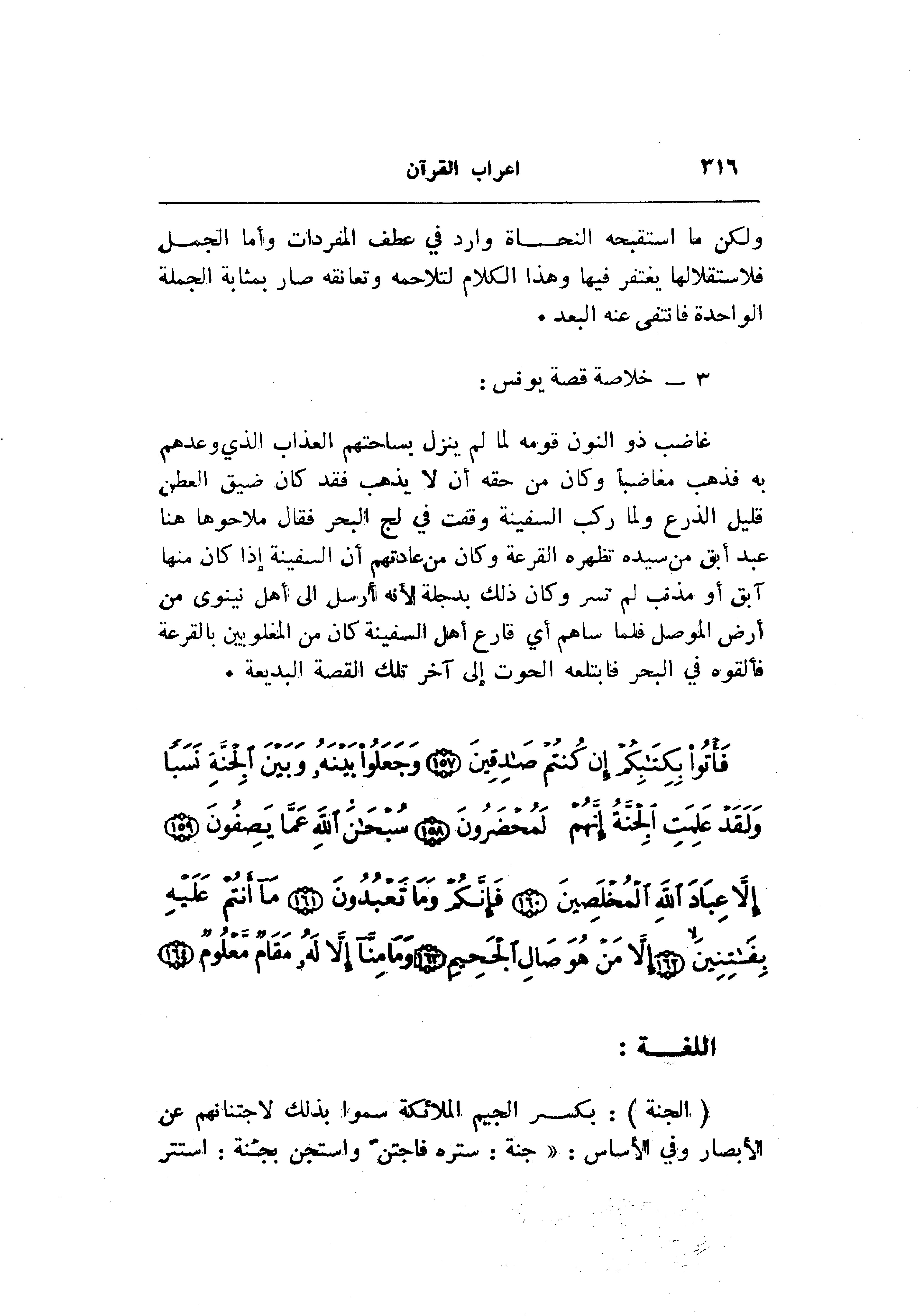 غاضب ذو النون قومه لما لم ينزل بساحتهم العذاب الذي وعدهم به فذهب مغاضبا وكان من حقه أن لا يذهب فقد كان ضيق العطن قليل الذرع ولما ركب السفينة وقفت في لج البحر فقال ملاحوها هنا عبد أبق من سيده تظهره القرعة وكان من عادتهم أن السفينة إذا كان منها آبق أو مذنب لم تسر وكان ذلك بدجلة لأنه أرسل الى أهل نينوى من أرض الموصل فلما ساهم أي قارع أهل السفينة كان من المغلوبين بالقرعة فألقوه في البحر فابتلعه الحوت إلى آخر تلك القصة البديعة.
