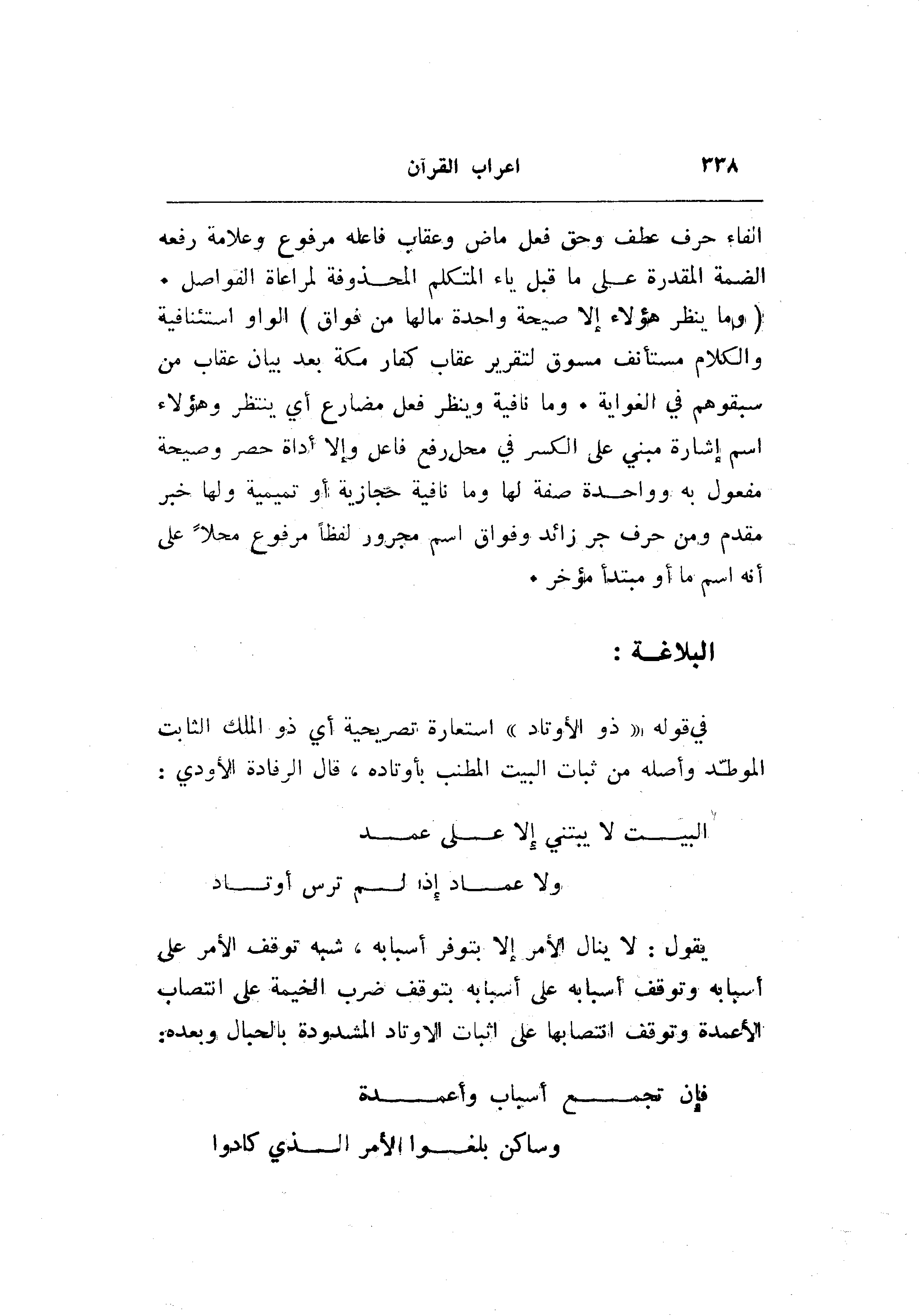 في قوله «ذو الأوتاد» استعارة تصريحية أي ذو الملك الثابت الموطّد وأصله من ثبات البيت المطنب بأوتاده، قال الرفادة الأودي:
