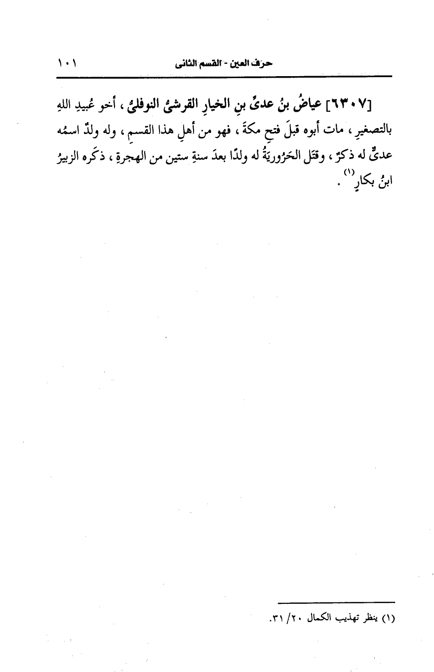 6307- (ز) عياض بن عَدِيّ بن الخيار، القُرشِيّ النوفلي أخو عبيد الله بالتصغير.