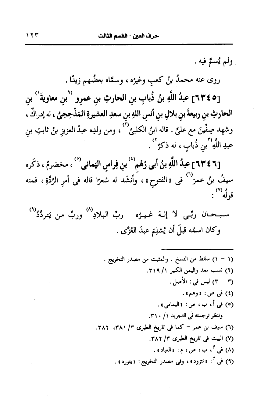 6345- عَبد الله بن ذباب بن الحارث بن عَمرو بن الحارث بن ربيعة بن بلال بن أنس الله ابن سَعد العشيرة المذحجي.