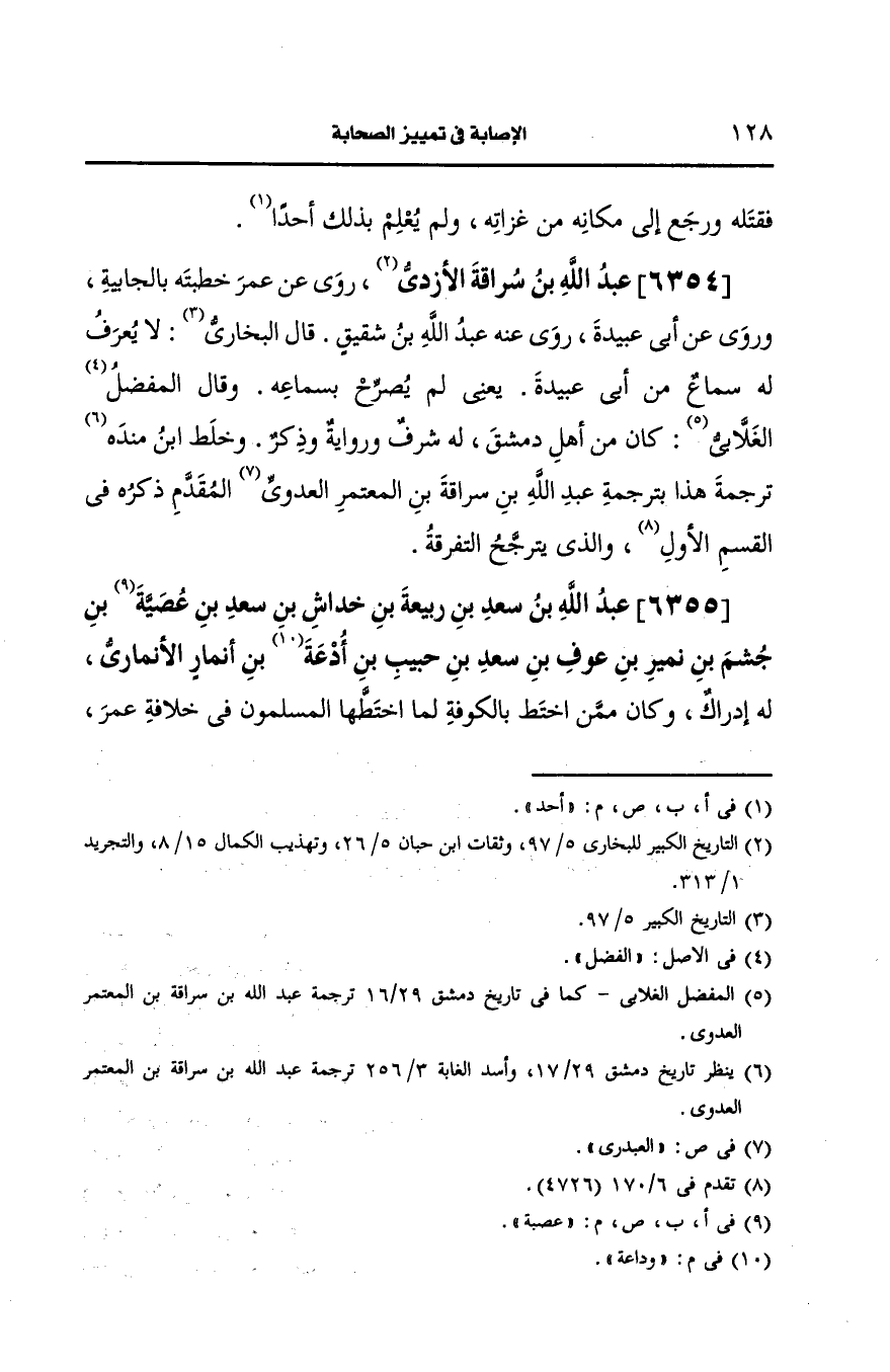 6354- عَبد الله بن سراقه الأزدي.