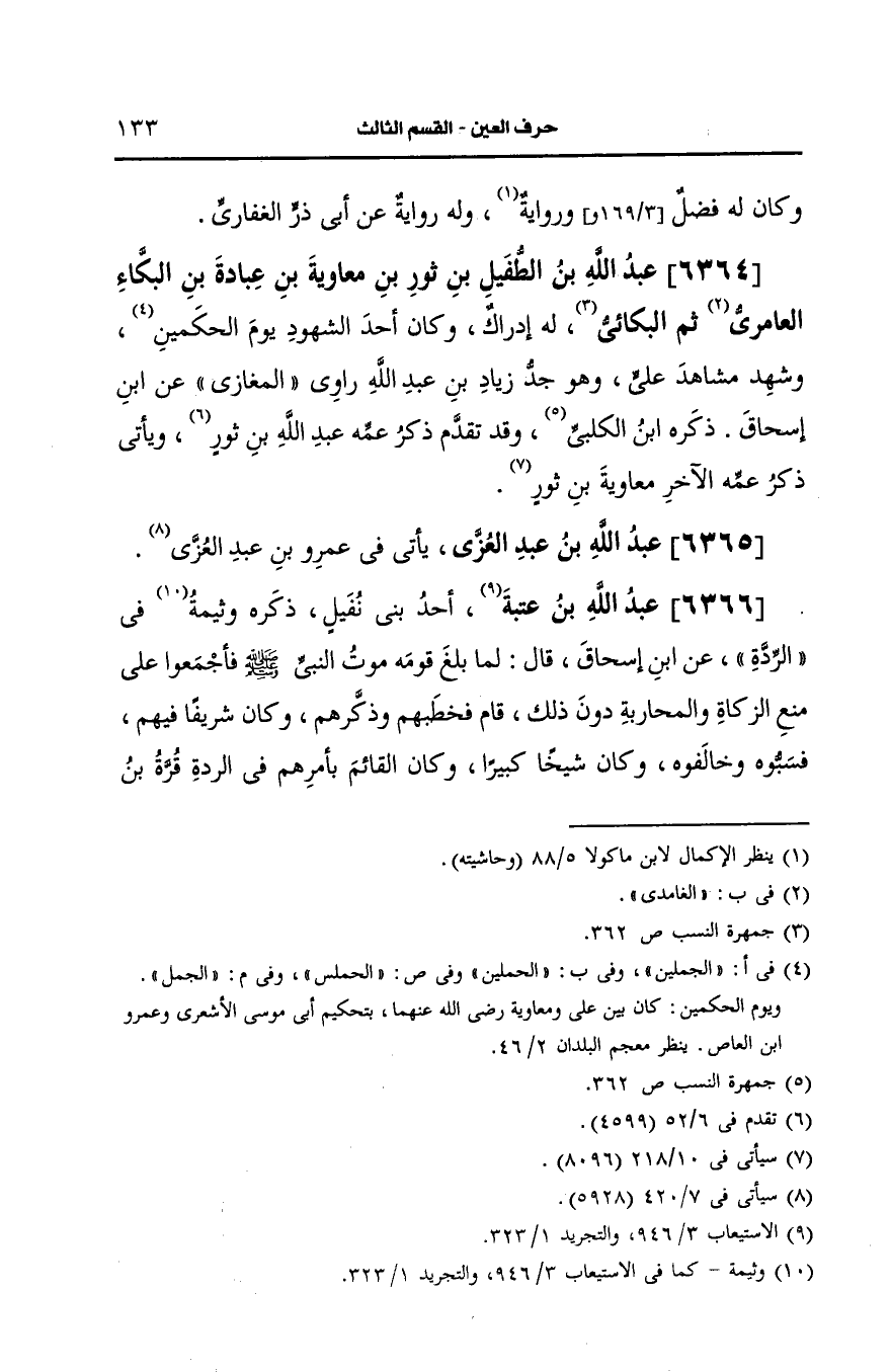 6364- عَبد الله بن الطفيل بن ثور بن معاوية بن عبادة بن البكاء العامري ثم البكائي.