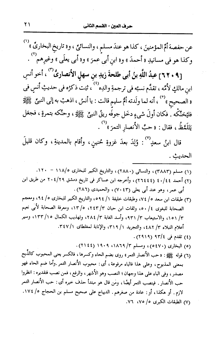 6209- عَبد الله بن أبي طلحة زيد بن سهل، الأَنصارِيّ أخو أنس بن مالك لامه.