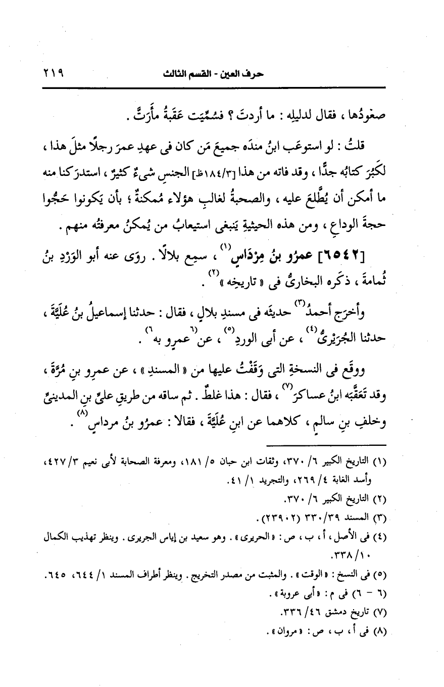 ووقع في النسخة التي وقفت عليها من المسند، عَن عَمرو بن مرة وقد تعقبه بن عساكر فقال هذا غلط ثم ساقه من طريق علي بن المديني وخلف بن سالم كلاهما، عَن ابن علية فقالا عَمرو بن مَروان.