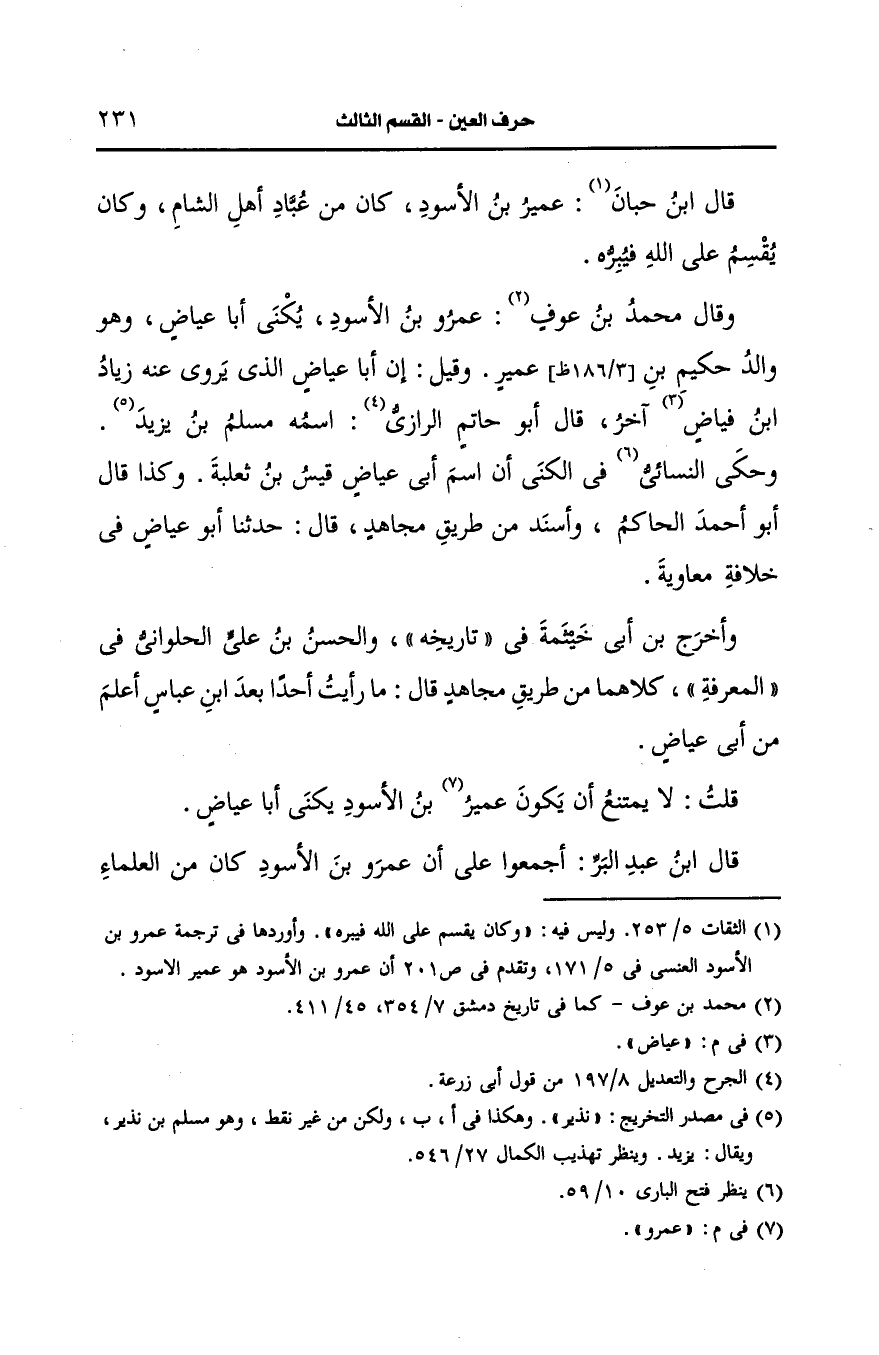 قلت: لا يمتنع ان يكون عَمرو بن الأَسود، يُكنى أَبا عياض.
