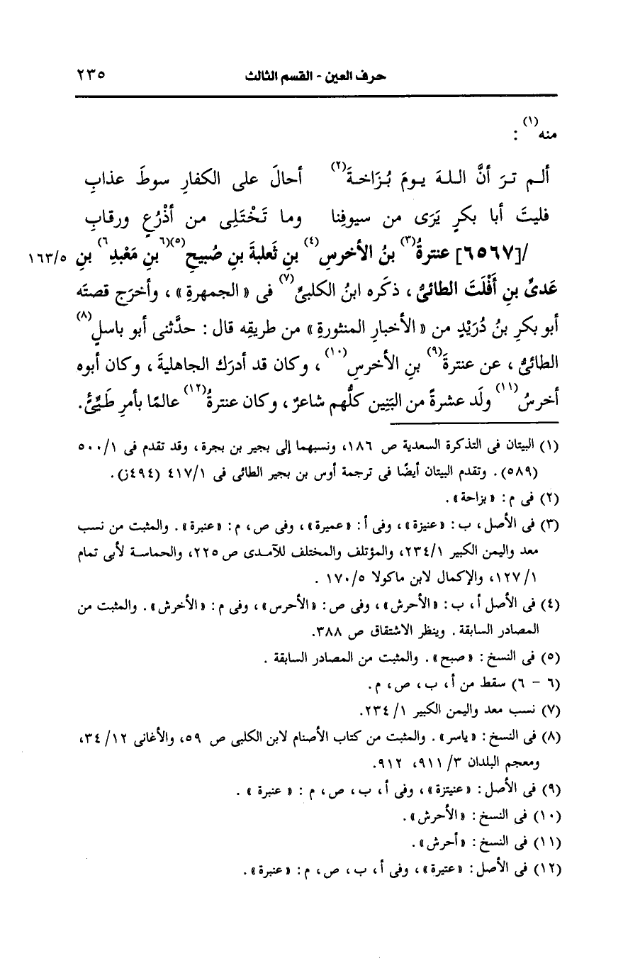 6567- عنبرة بن الأخرش بن ثعلبة بن صبح بن عَدِيّ بن أفلت الطائي.