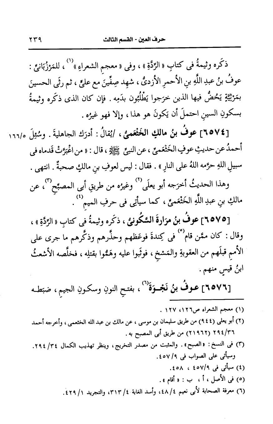 6576- عوف بن نجوة بفتح النون وسكون الجيم ضبطه بن الأثير.