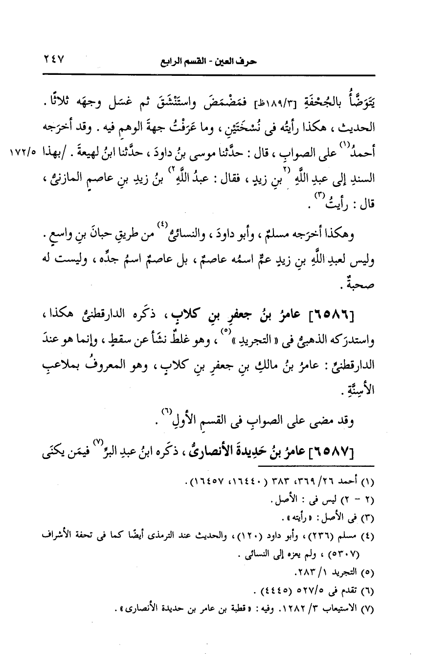 استدرَكَه الذهبي في التجريد وهو غلط نشأ، عَن سقط وانما هو عند الدارقطني عامر بن مالك بن جعفر بن كلاب وهو المعروف بملاعب الأسنة.