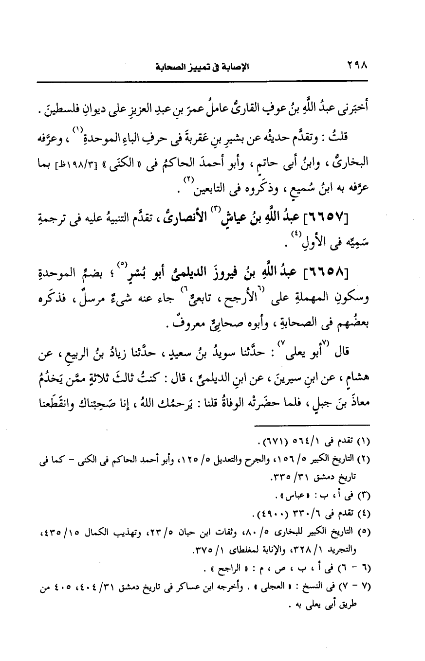 6658- (ز) عَبد الله بن فيروز الديلمي أَبو بسر بضم الموحدة وسكون المهملة على الراجح.
