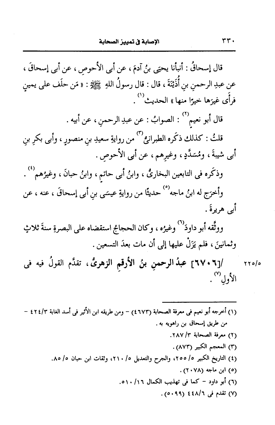 6706- عبد الرحمن بن الأرقم الزُّهْرِيّ.
