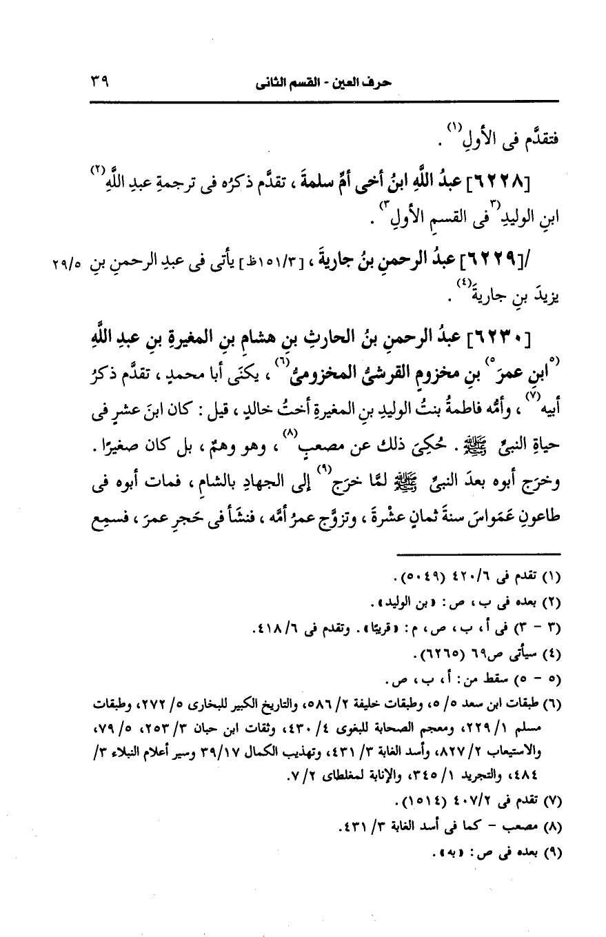6230- عبد الرحمن بن الحارث بن هشام بن المغيرة بن عَبد الله بن عمر بن محزوم، القُرشِيّ المخزومي، يُكنى أَبا محمد.