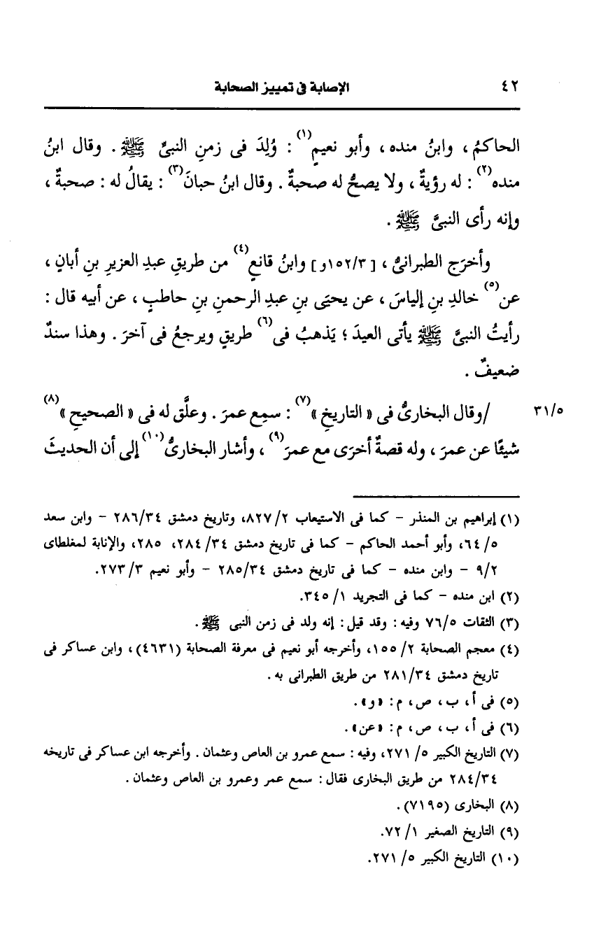 وقال ابن مَنْدَه: له رؤية ولا يصح له صُحبَةٌ.