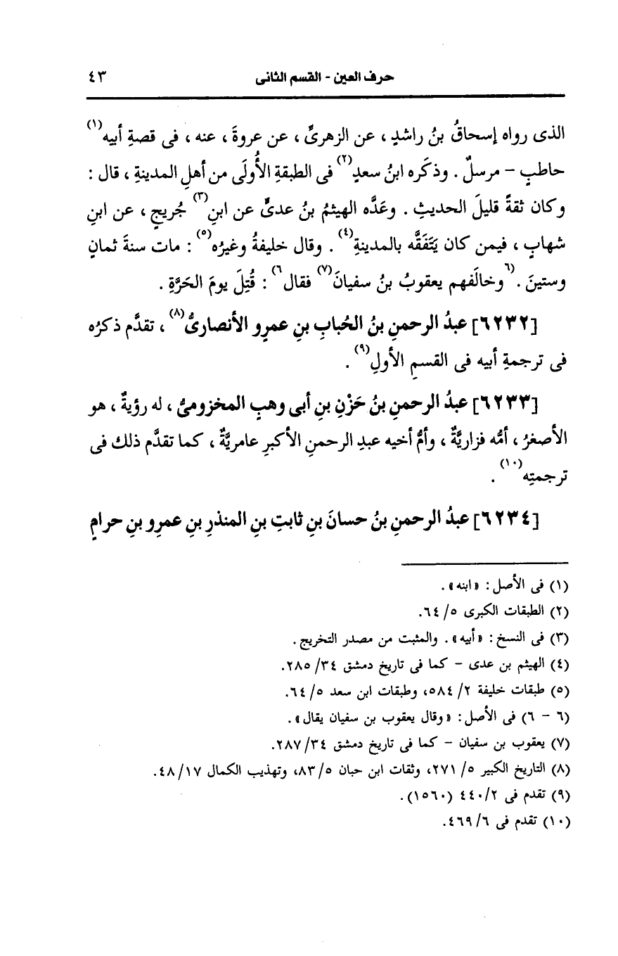 6234- عبد الرحمن بن حسان بن ثابت بن المنذر بن عَمرو بن حرام، الأَنصارِيّ الخزرجي الشاعر.، يُكنى أَبا سعد وأبا محمد وأمه أخت مارية القبطية.