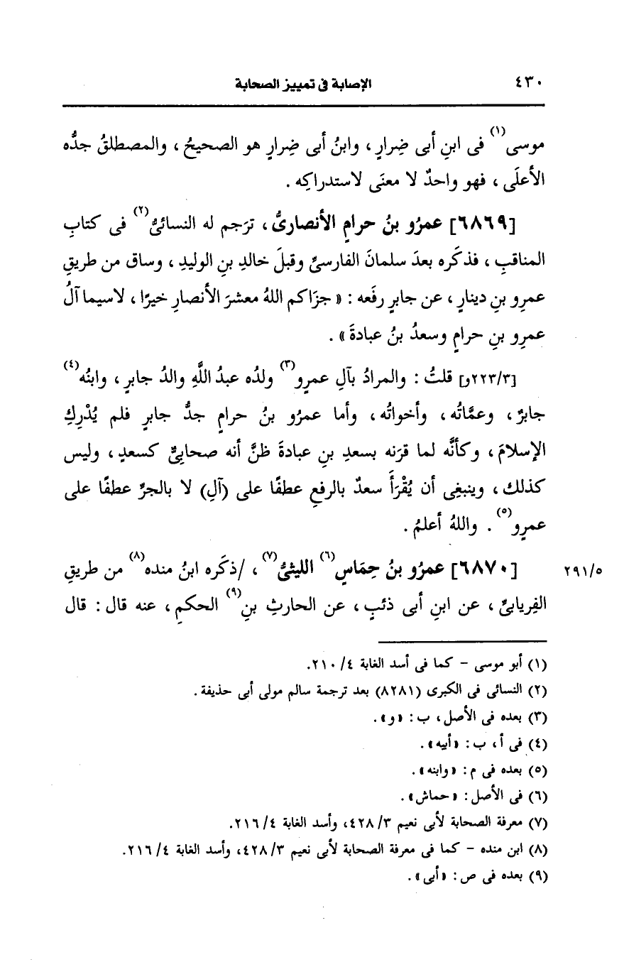 6869- (ز) عَمرو بن حرام، الأَنصارِيّ.