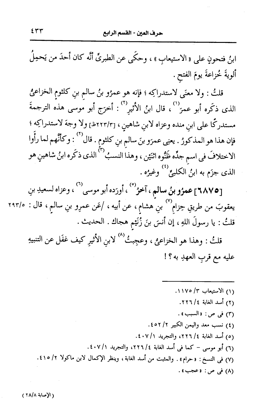 كتاب الإصابة في تمييز الصحابة (ط هجر) (اسم الجزء: 8)