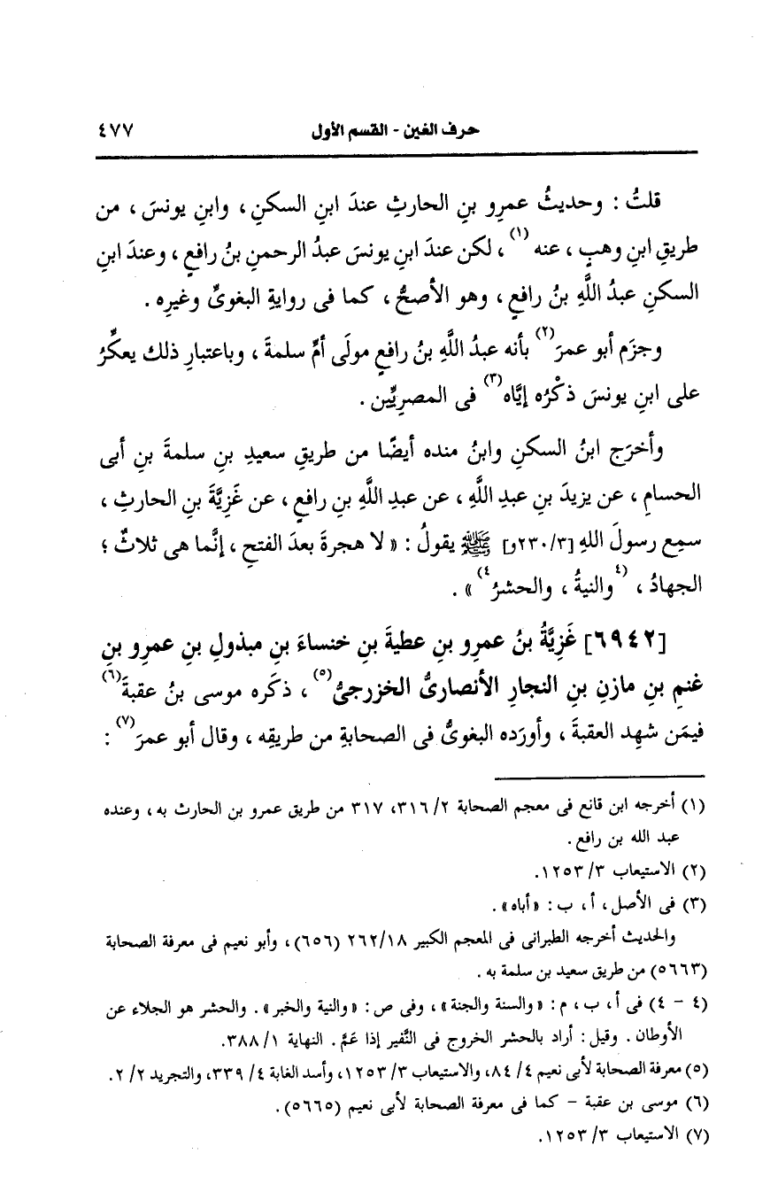 6942- غزية بن عَمرو بن عطية بن خنساه بن مبذول بن عَمرو بن غنم بن مازن بن النجار، الأَنصارِيّ الخزرجي.