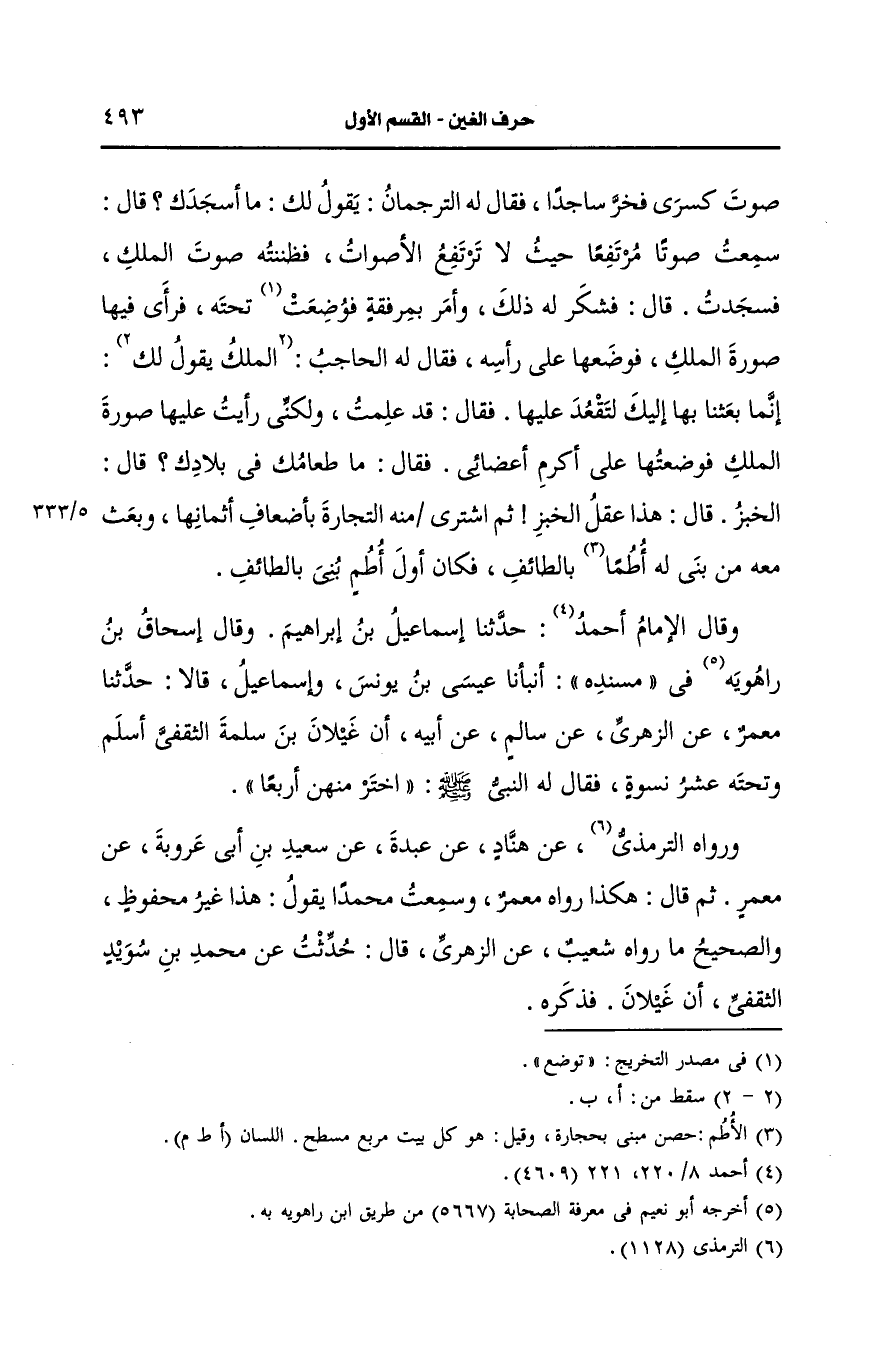 وقال الإمام أَحمد، حَدَّثنا إسماعيل بن إبراهيم وقال إسحاق بن راهويه في مسنده أنبأنا عيسى بن يونس وإسماعيل قالا، حَدَّثنا معمر، عَن الزُّهْرِيّ، عَن سالم، عَن أَبيه ان غيلان بن سلمة الثَّقفي اسلم وتحته عشر نسوة فقال له النَّبيّ صَلى الله عَلَيه وسَلم اختر منهن أربعا.