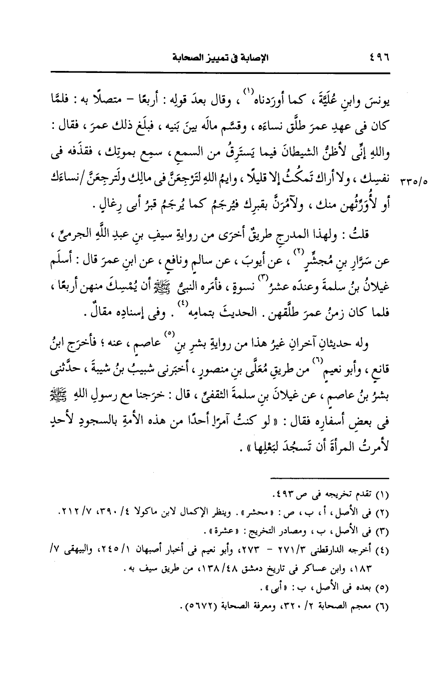 قلت: ولهذا المدرج طريق أخرى من رواية سيف بن عَبد الله الجرمي، عَن سرار بن مجشر، عَن أيوب، عَن سالم ونافع، عَن ابن عمر قال اسلم غيلان بن سلمة وعنده عشر نسوة فأمر النَّبيّ صَلى الله عَلَيه وسَلم ان يمسك منهن أربعا فلما كان زمن عمر طلقهن الحديث بتمامه.
