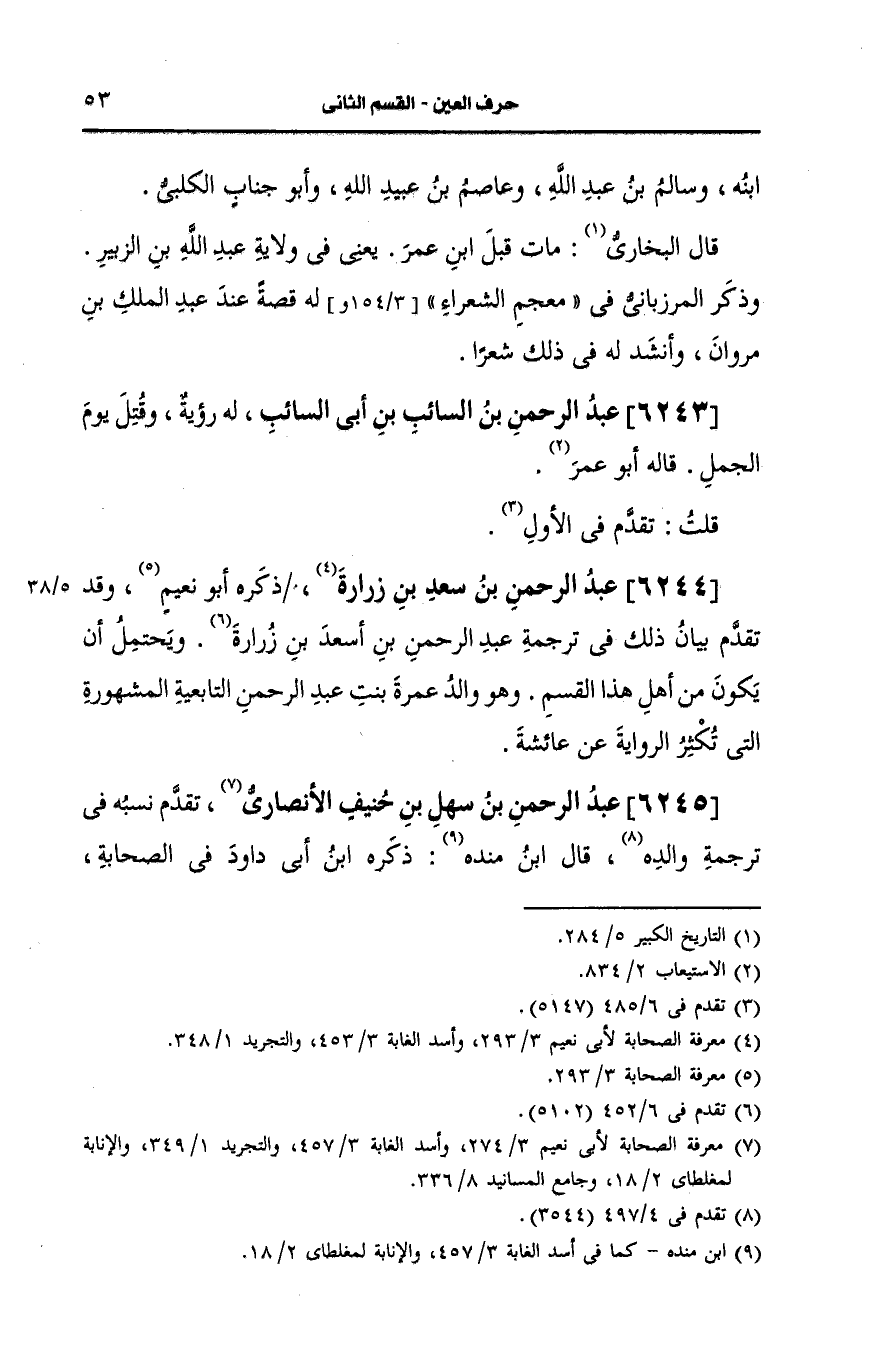 وَقد تَقدَّم في بيان ذلك في ترجمة عبد الرحمن بن اسعد بن زرارة ويحتمل ان يكون من أهل هذا القسم وهو والد عمرة بنت عبد الرحمن التابعية المشهورة التي تكثر الرواية، عَن عائشة.