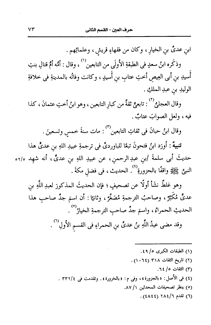 وهو غلط نشأ أولا، عَن تصحيف فان الحديث المذكور لعبد الله بن عَدِيّ مكبرا وصاحب الترجمة مصغر وثانيا ان اسم جد صاحب هذا الحديث الحمراء واسم جد صاحب الترجمة الخيار.