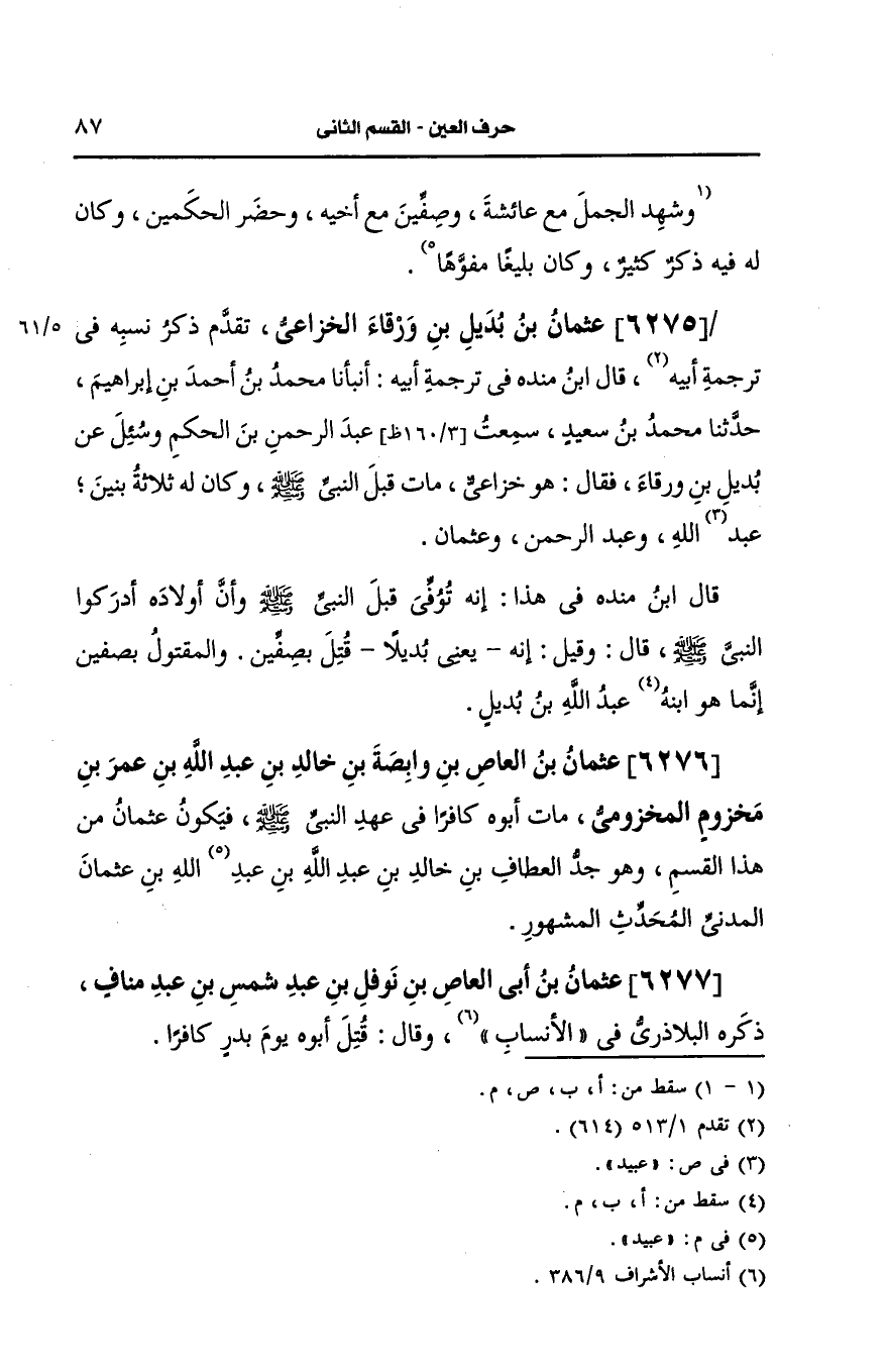 6275- (ز) عثمان بن بديل بن ورقاء الخُزاعيّ.