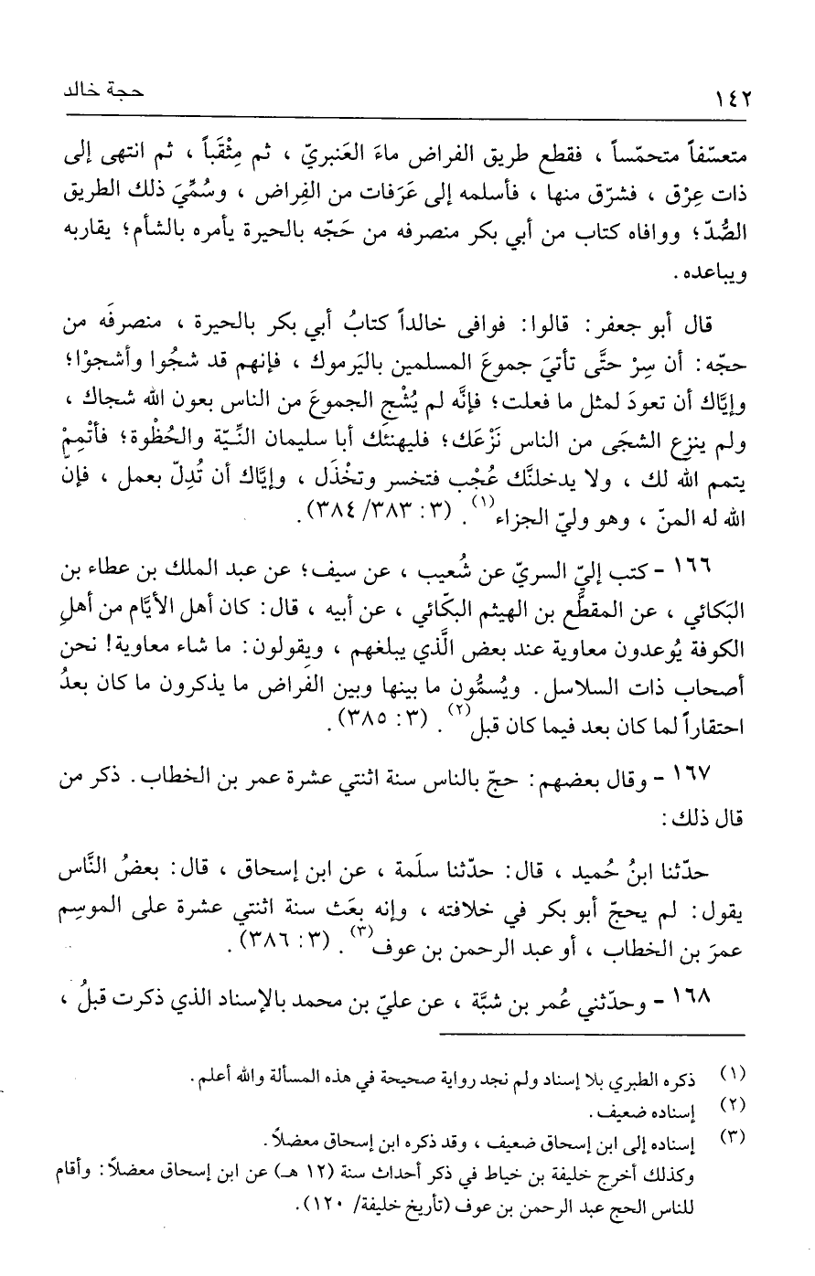 حدّثنا ابنُ حُميد، قال: حدّئنا سلَمة، عن ابن إسحاق، قال: بعضُ النَّاس يقول: لم يحجّ أبو بكر في خلافته، وإنه بعَث سنة اثنتي عشرة على الموسِم عمرَ بن الخطاب، أو عبد الرحمن بن عوف (٣). (٣: ٣٨٦).